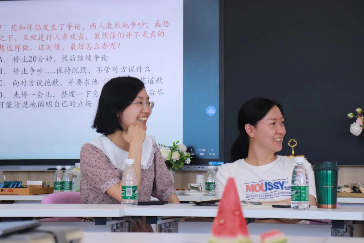 陈红敏首先对参与教师的基本情况作了简单了解,并通过具体事例分析了大家各自的情绪类型。接着,介绍了妥善处理亲子关系的方法,指导大家对不同年龄阶段的孩子应实施不同教养策略,以及情绪处理的相关技巧。