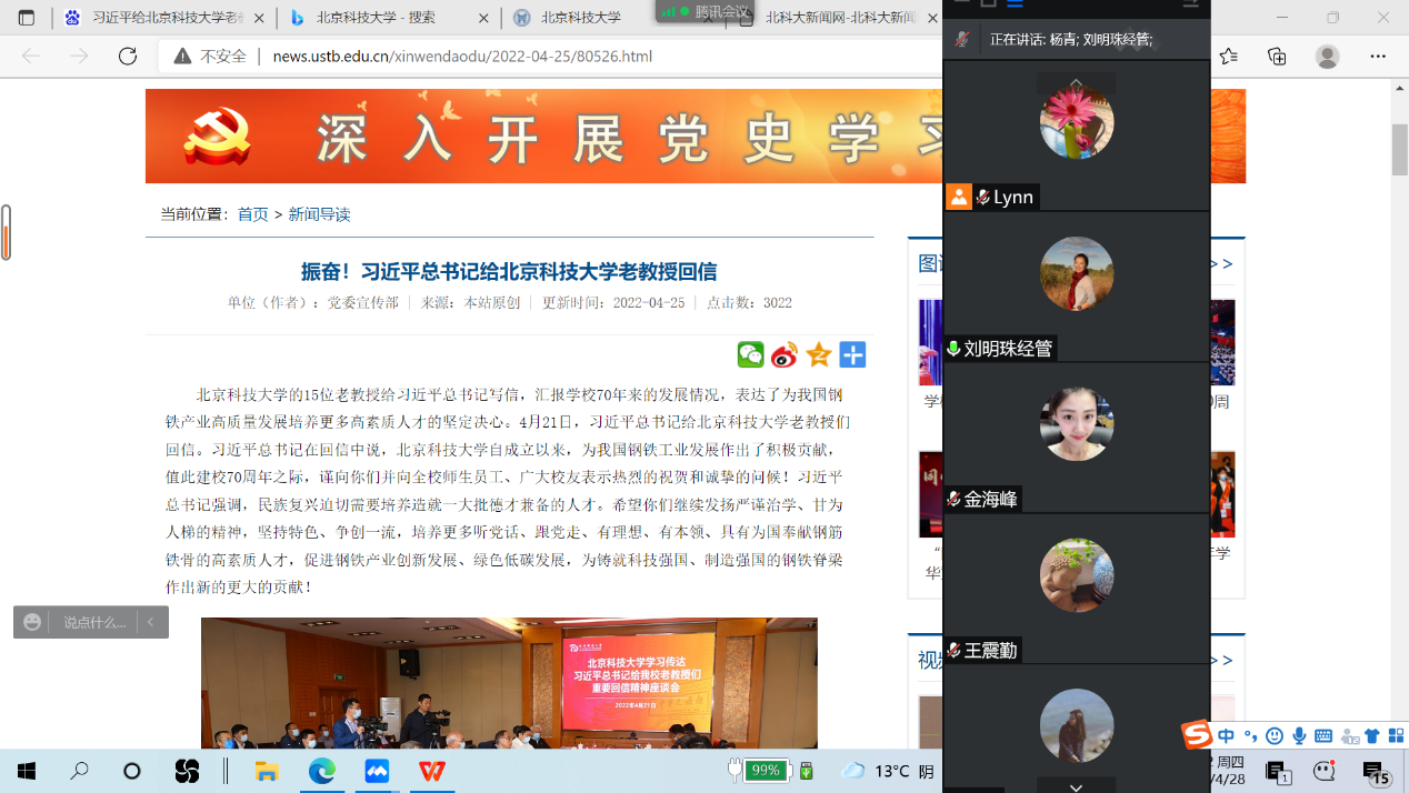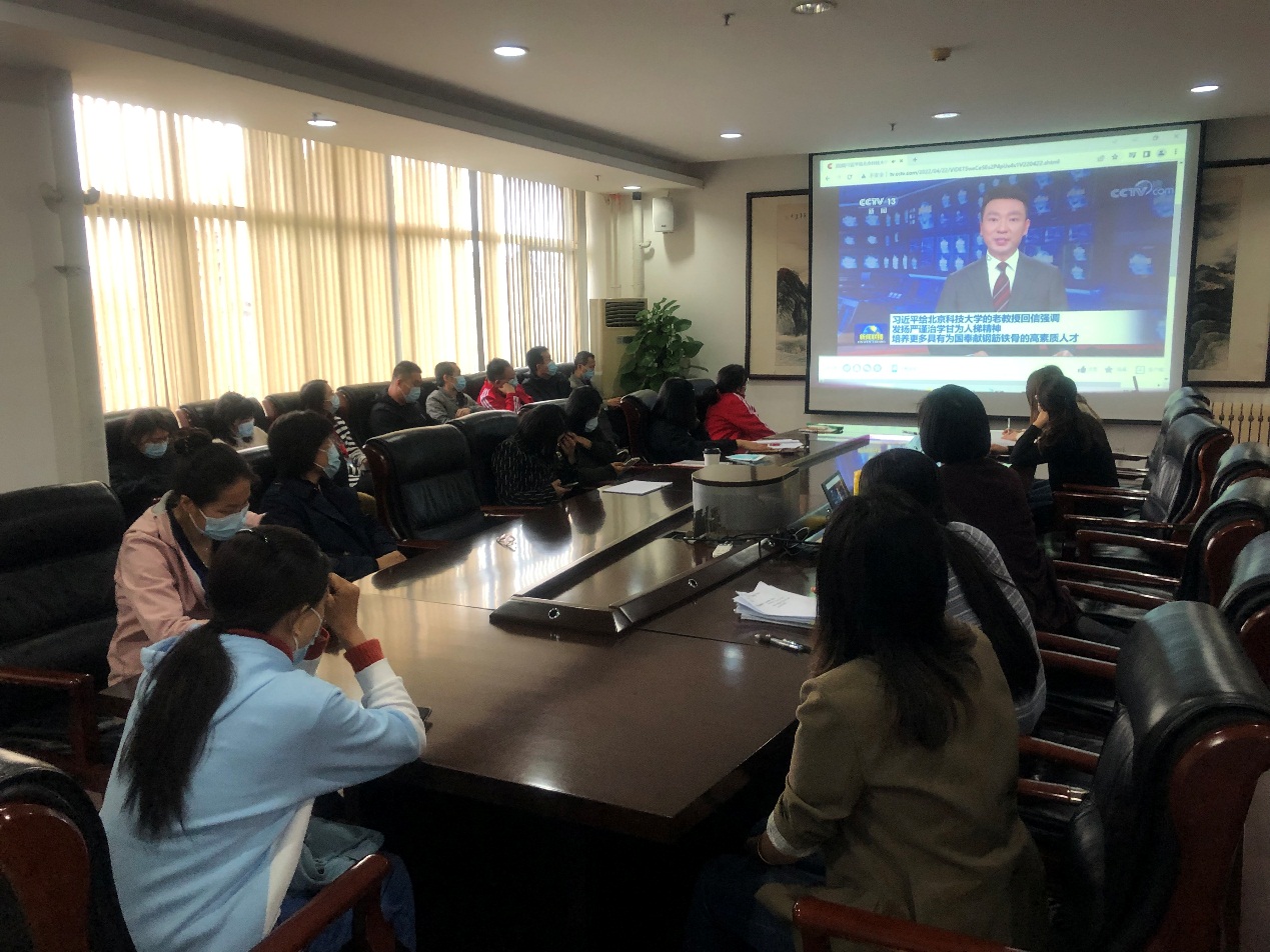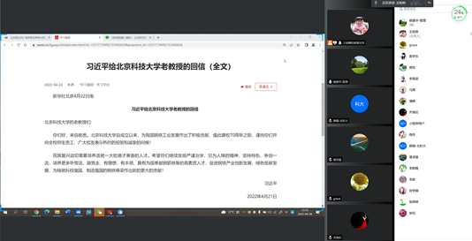 2022年4月21日,中共中央总书记、国家主席、中央军委主席习近平在学校建校70周年前夕给beat365在线唯一官网老教授们回信,充分肯定了学校自成立以来为我国钢铁工业发展作出的积极贡献,对培养更多高素质人才,促进钢铁产业创新发展、绿色低碳发展提出殷切希望。为深入学习贯彻习近平总书记给学校老教授重要回信精神,根据学校党委统一要求和部署,beat365在线唯一官网党委高度重视,及时组织学院全体师生党支部以线上、线下相结合的学习方式开展学习。