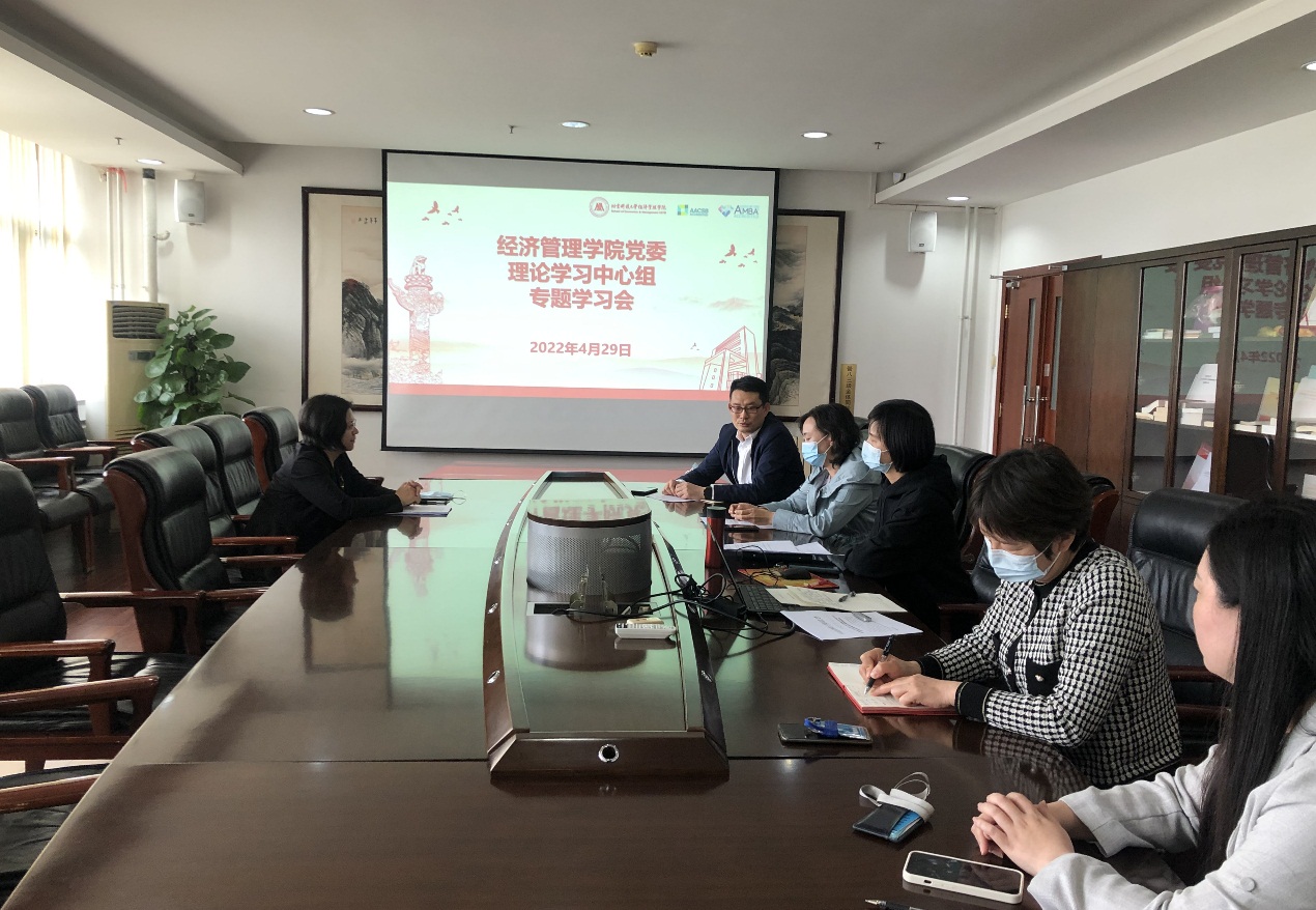 4月29日下午,beat365在线唯一官网党委在经管楼809召开党委理论中心组专题学习会,会议由学院党委书记武森主持并领学,全体中心组成员参加了学习会议。