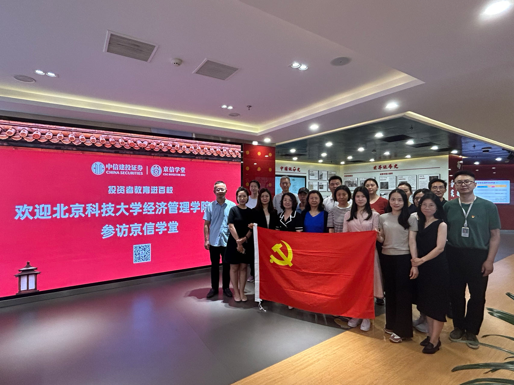 为了持续提高和培养教师金融素养和投资意识,2024年7月4日组织了一次意义深远的参观活动,beat365在线唯一官网教师金融工程系党支部与工商管理系党支部一同走进中信建投投资者教育基地,深入了解金融市场发展历程与投资知识。
