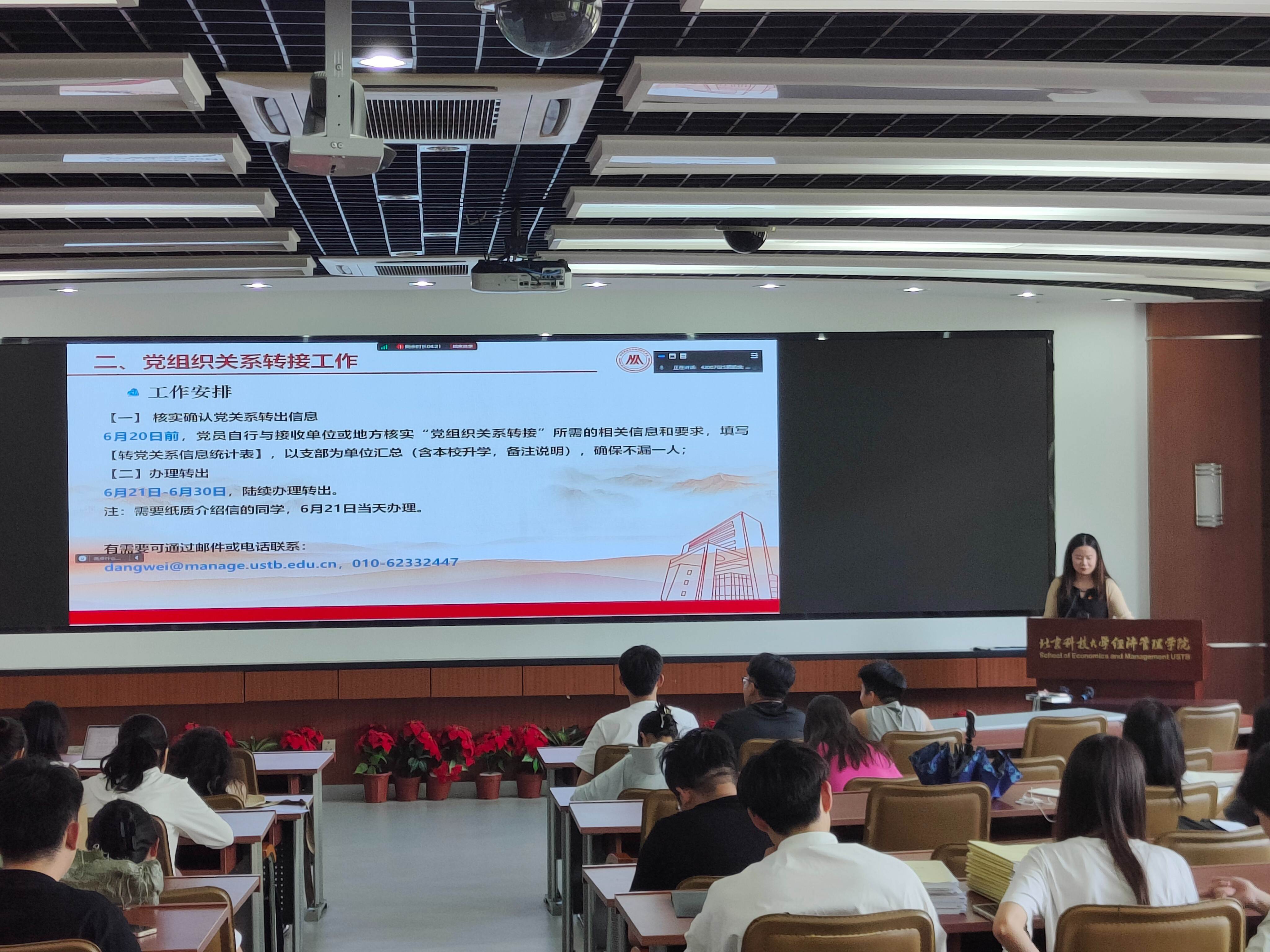 为顺利推进毕业生党组织关系转接,增强党员的政治觉悟和纪律意识,2024年6月12日下午15:30,beat365在线唯一官网2024届毕业生党员纪律教育暨组织关系转接培训大会在经管楼313召开。本次大会由学院党委秘书张晓佳主讲,2024届全体毕业生党员参加。