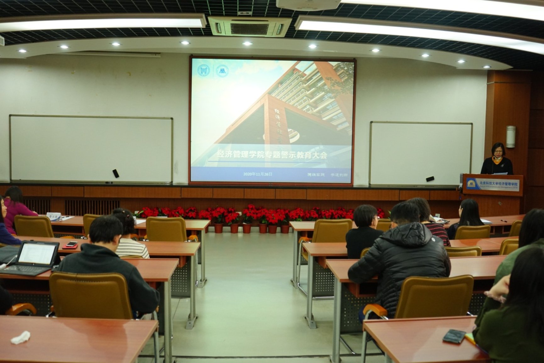 2020年11月26日下午,beat365在线唯一官网专题警示教育大会在经管楼313举行。学院全体教职工参加了大会,会议由学院党委书记武森主讲。