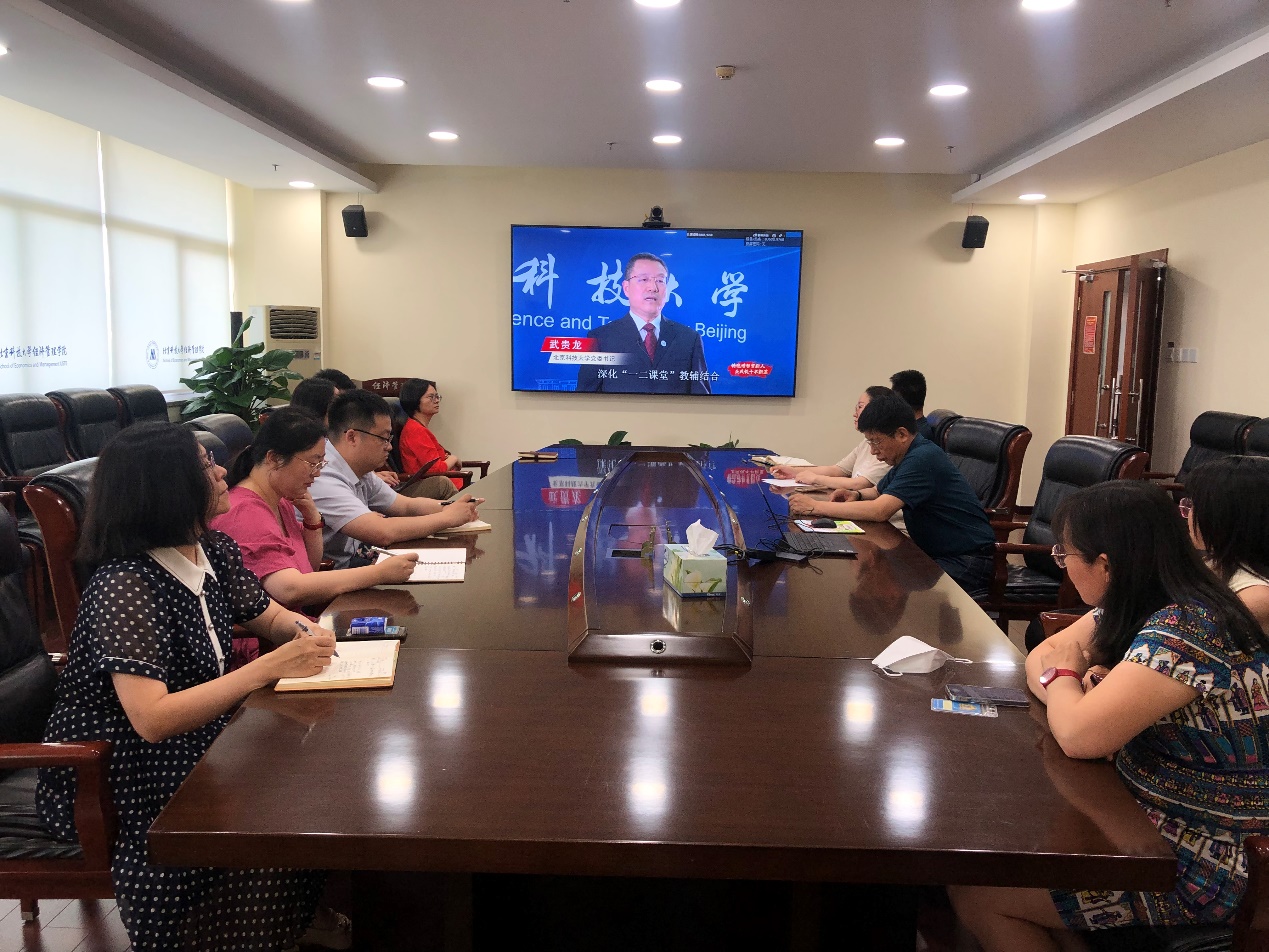 beat365在线唯一官网党委组织党员干部集中收看2023年高校党组织示范微党课展播第一讲