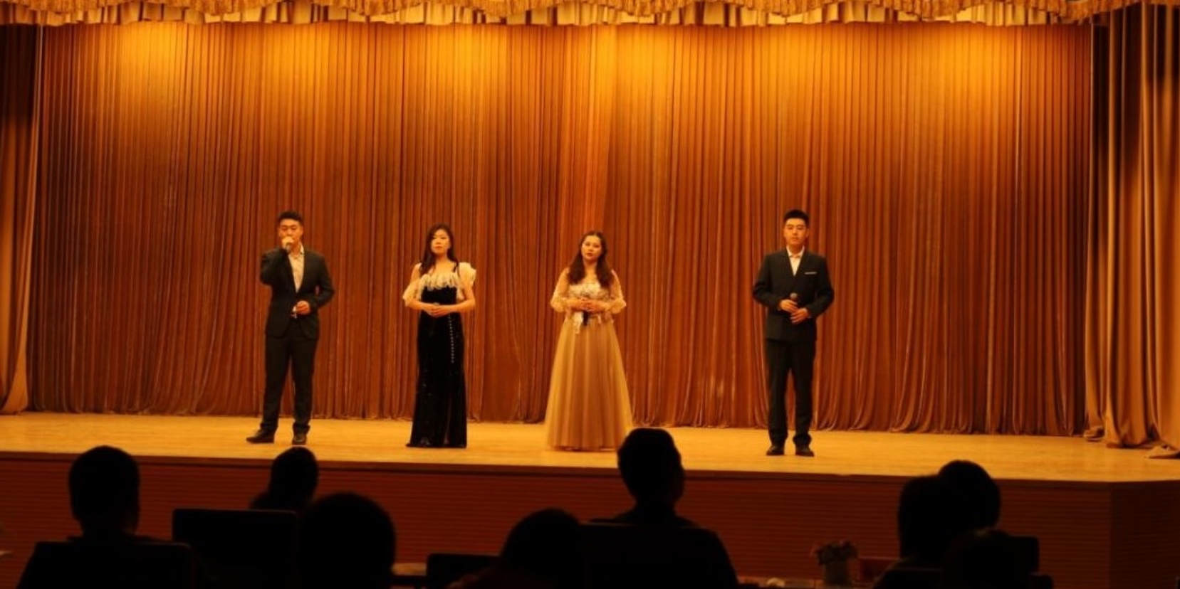 所有参赛同学竞演完成后,北科合唱团的鞠何英、申倩如、刘柏良、王家骏也为现场的老师和同学带来了一首合唱《和光同尘》。