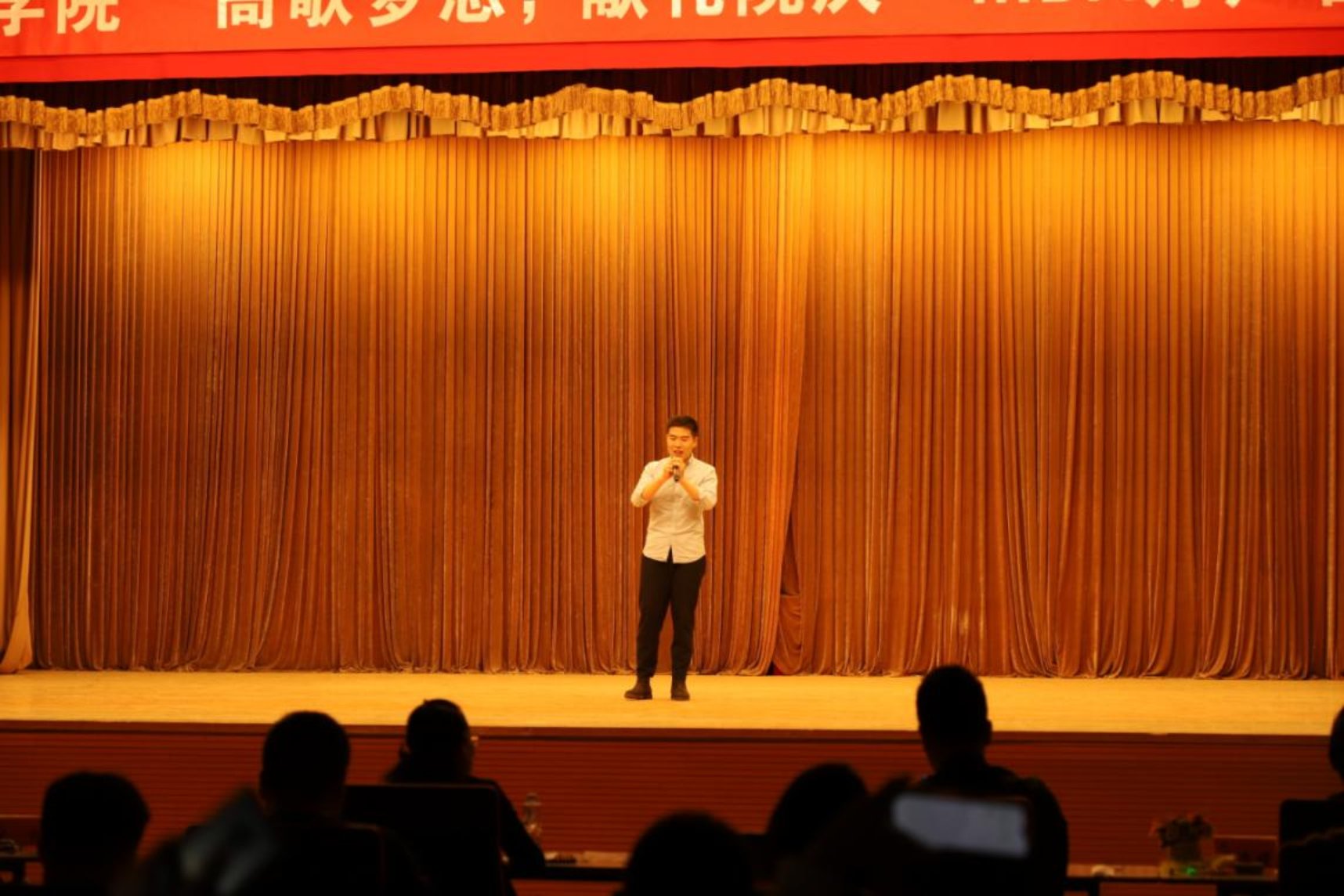 二号选手 20周末班的苗延科,他带来的是一首《离不开你》,声音高亢,震撼人心。