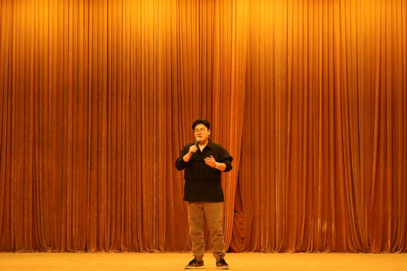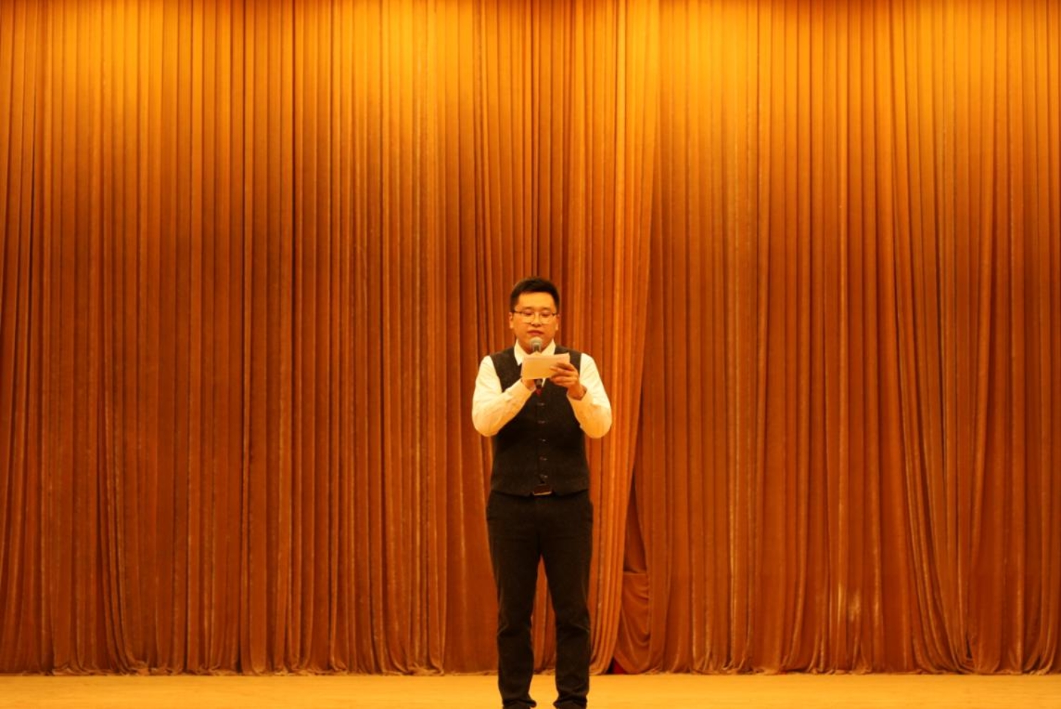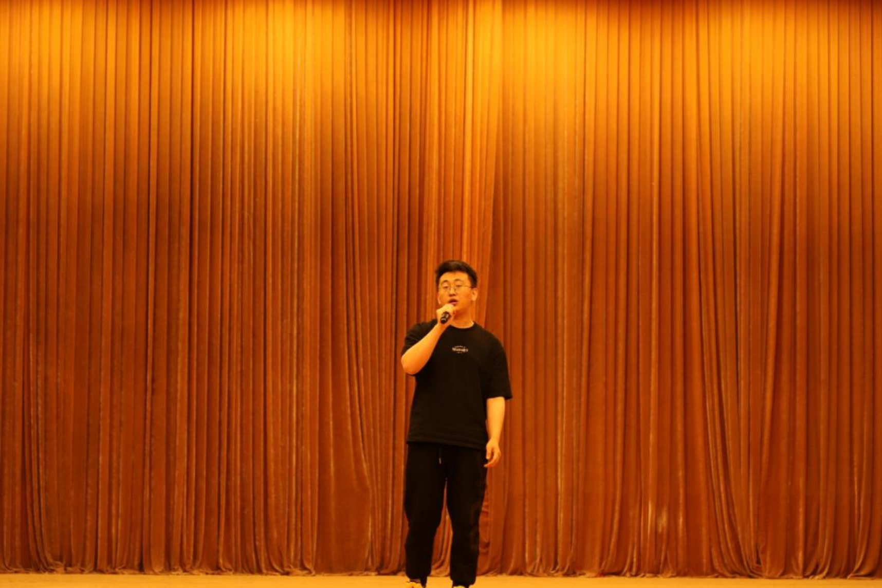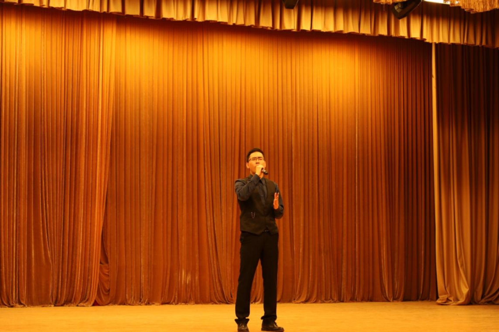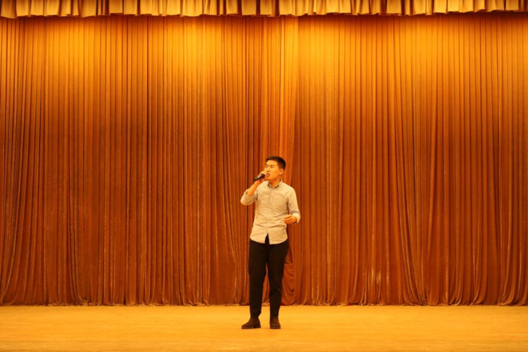第五位上场的同学是20集中班的李擎,他带来的歌曲是一首经典的粤语歌《月半小夜曲》。