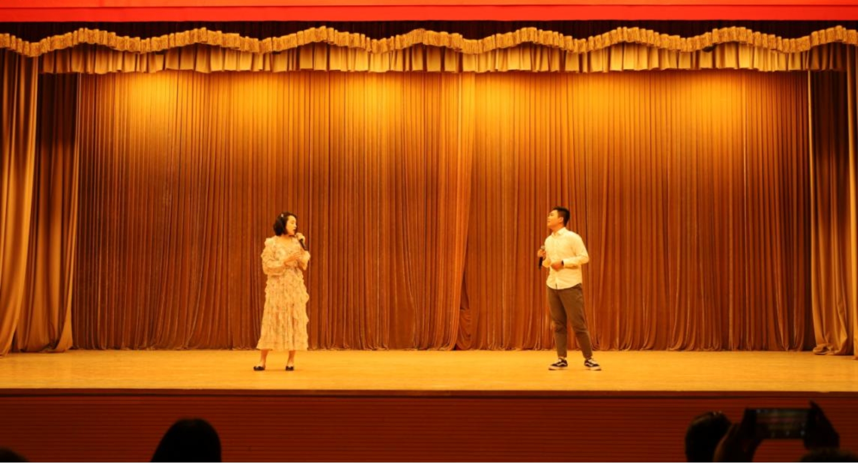 接下来是我们颜值与实力担当的两位嘉宾的献唱环节。感谢19级的杨逸静主席和20级的张文杰主席带来的精彩对唱《为了遇见你》。