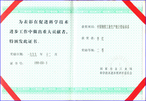 “我最自豪的成就之一,是在1994年至1998年间,正值我国国民经济核算体系由MPS(前苏联使用的物质产品平衡表体系)向SNA(西方通用的国民经济核算体系)全面转型的历史性时刻,我亲自组织并主持完成了我们国家《冶金工业生产统计指标体系》的修订工作。在这一变革与信息化浪潮交织的关键时期,我带领团队不仅成功应对了由计划经济向市场经济转型的挑战,还克服了生产、财务、销售等部门在钢铁产品分类上的分歧,为冶金企业构建集成的信息化体系奠定了坚实的管理基础。该指标体系不仅打通了国内钢铁产品分类与海关进出口的对接关系,促进了替代进口战略的落实,还实现了中国钢铁产品分类与国际主流标准的无缝对接,极大地推动了国际间的专业交流与技术合作,标志着我国钢铁工业统计指标体系的‘国际化’。这一成果不仅荣获了1999年部级科技进步(管理类)二等奖,而且至今仍在冶金行业得到广泛应用,有效支撑了冶金工业统计管理的变革与进步,加速了行业的信息化进程,为我国钢铁工业的长远发展奠定了坚实的基础,成为与世界接轨的重要里程碑。”