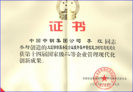 李红荣获国家级二等企业管理现代化创新成果奖
