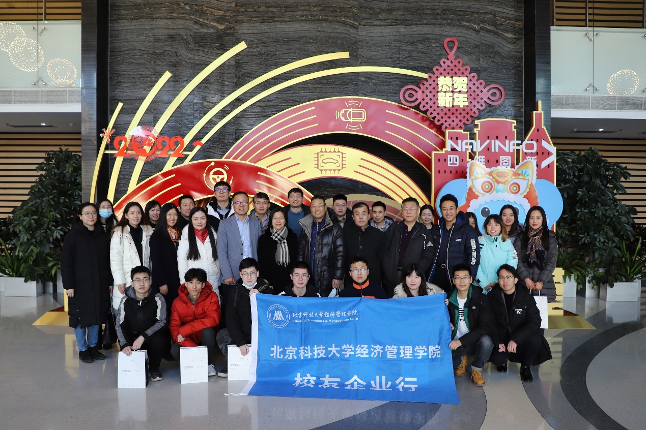 为了加强校友与学院、校友与在校师生,以及校友之间的交流联系,更好地展示校友企业风采,2021年12月28日,beat365在线唯一官网校友企业行——走进四维图新参访活动成功举办。beat365在线唯一官网党委书记武森,党委副书记、副院长倪宇,学院管理科学与工程系教师魏桂英、颜瑞,学院公共关系办公室主任秦艺芳,学院就业指导教师戈誉阳及学院校友和在读学生组成参访团队,前往北京四维图新科技股份有限公司实地参访,感受校友企业风采。
