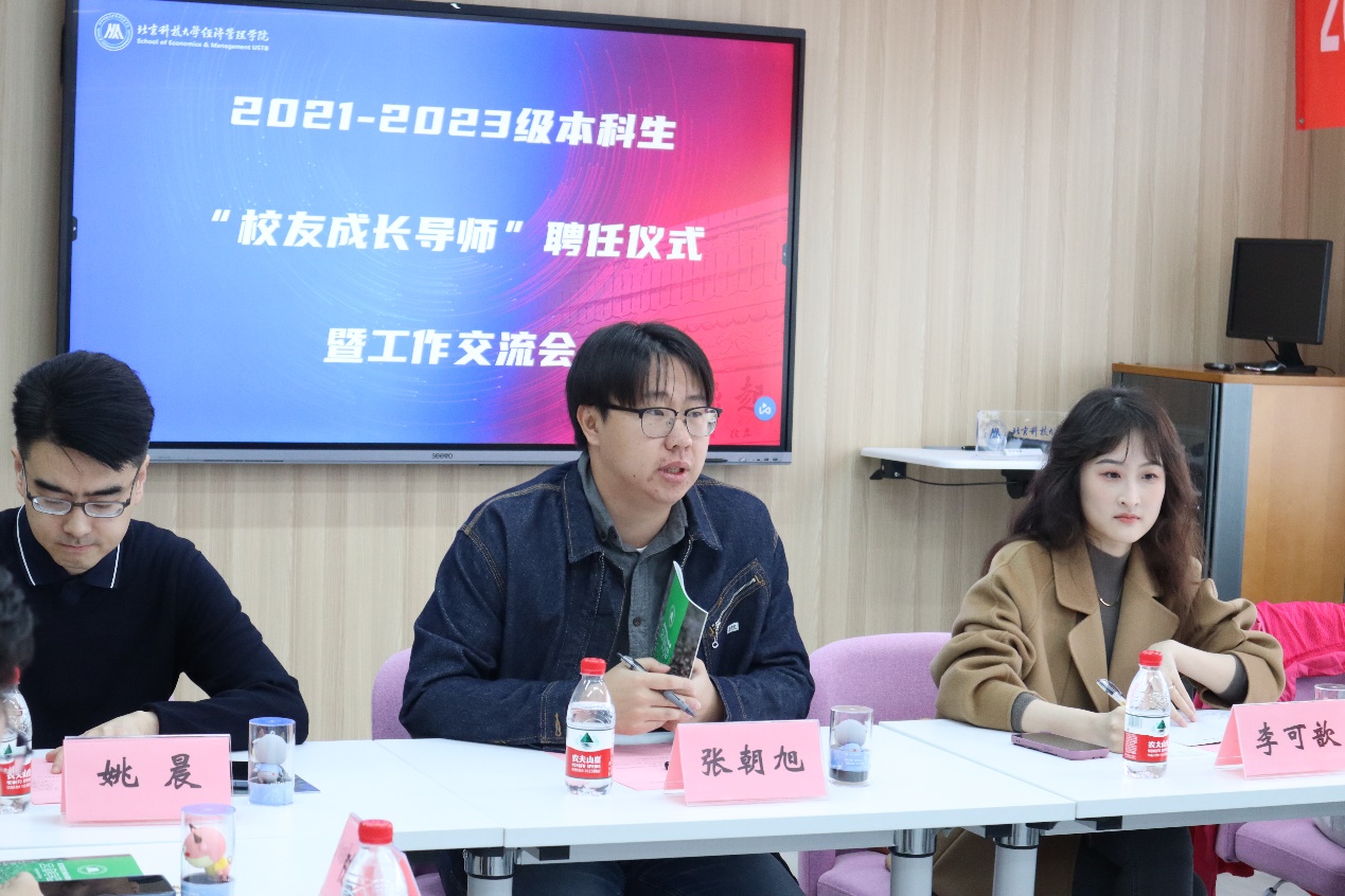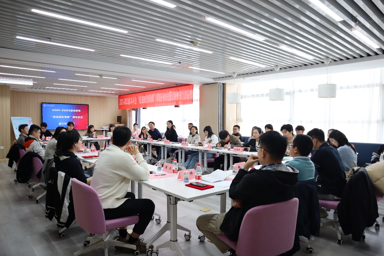 2023年11月4日上午,2021-2023级本科生“校友成长导师”聘任仪式暨工作交流座谈会在经管楼1205顺利举行。学院党委书记武森出席会议,2021-2023级校友成长导师、学生辅导员以及学生代表参加会议,会议由学院校友与基金办公室主任秦艺芳主持。