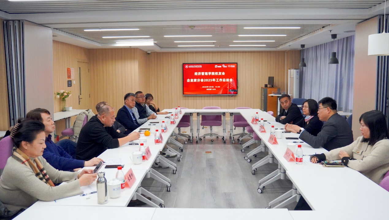 1月9日下午,经管校友会企业家分会2025年工作总结会在学院1205会议室顺利举行。会议重点总结企业家分会2025年度工作情况,深入研讨2026年度工作思路与重点任务。学院党委书记武森,党委副书记、副院长刘焱,经管校友会副会长杨城,企业家分会副会长王晓勇、刘兴宇、李红、陈喆、陈惠,副秘书长宋翌玲出席会议;副会长胡仔健(兼秘书长)、李明增在线参会。会议由会长张亚林主持。
