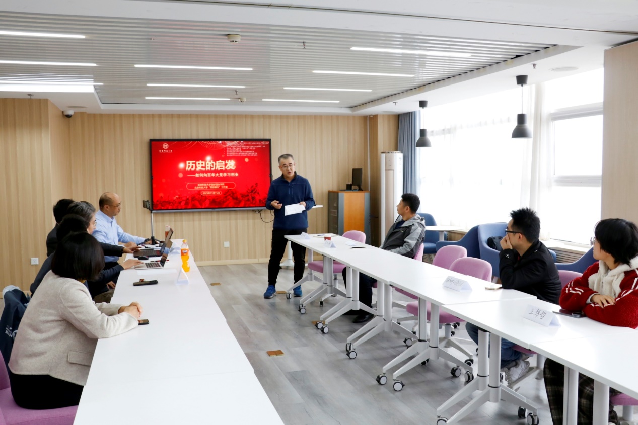 邓张升校友的分享题目为《历史的启发——如何向百年大党学习创业》。他结合企业界和创投圈学习党史、军史及《毛选》并成功实践的案例,深入剖析了百年大党的创业历程,并提炼出“企业创业年轮图”,为校友们提供了从党史中汲取创业智慧、穿越经济周期、保持与时俱进的方法和思路。