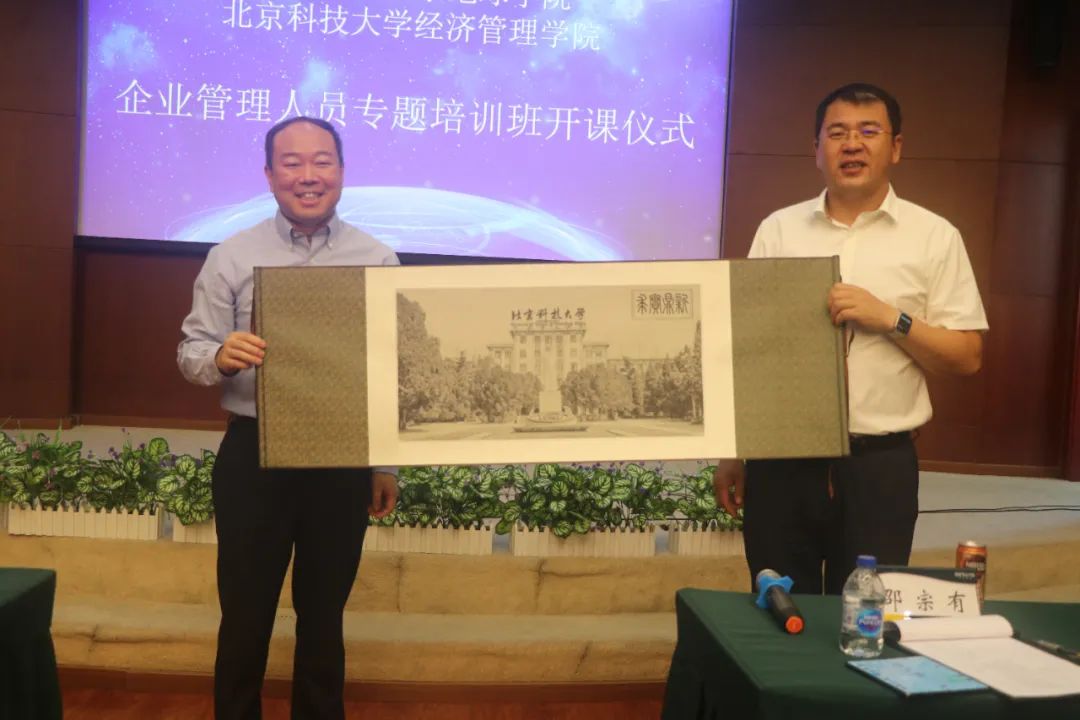 仪式最后,闫相斌副校长代表beat365在线唯一官网向中科星图股份有限公司赠送《beat365在线唯一官网全貌画卷》,邵宗有院长代表中科星图接收礼物,两位领导共同展示画卷。至此,开班仪式在与会嘉宾的掌声和希冀中圆满落幕。