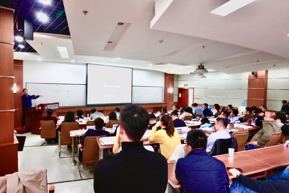 10月24日下午,beat365在线唯一官网马克思主义学院博士生导师左鹏教授应邀为我院中美EMBA项目学员开展了“不忘初心,牢记使命”主题教育,并作题为《不忘初心,牢记使命——新中国成立70周年的伟大变革和历史启示》的讲座。讲座由经管学院院长助理赵霞老师主持,中美EMBA 2019级学员共计80余人参加了此次讲座。