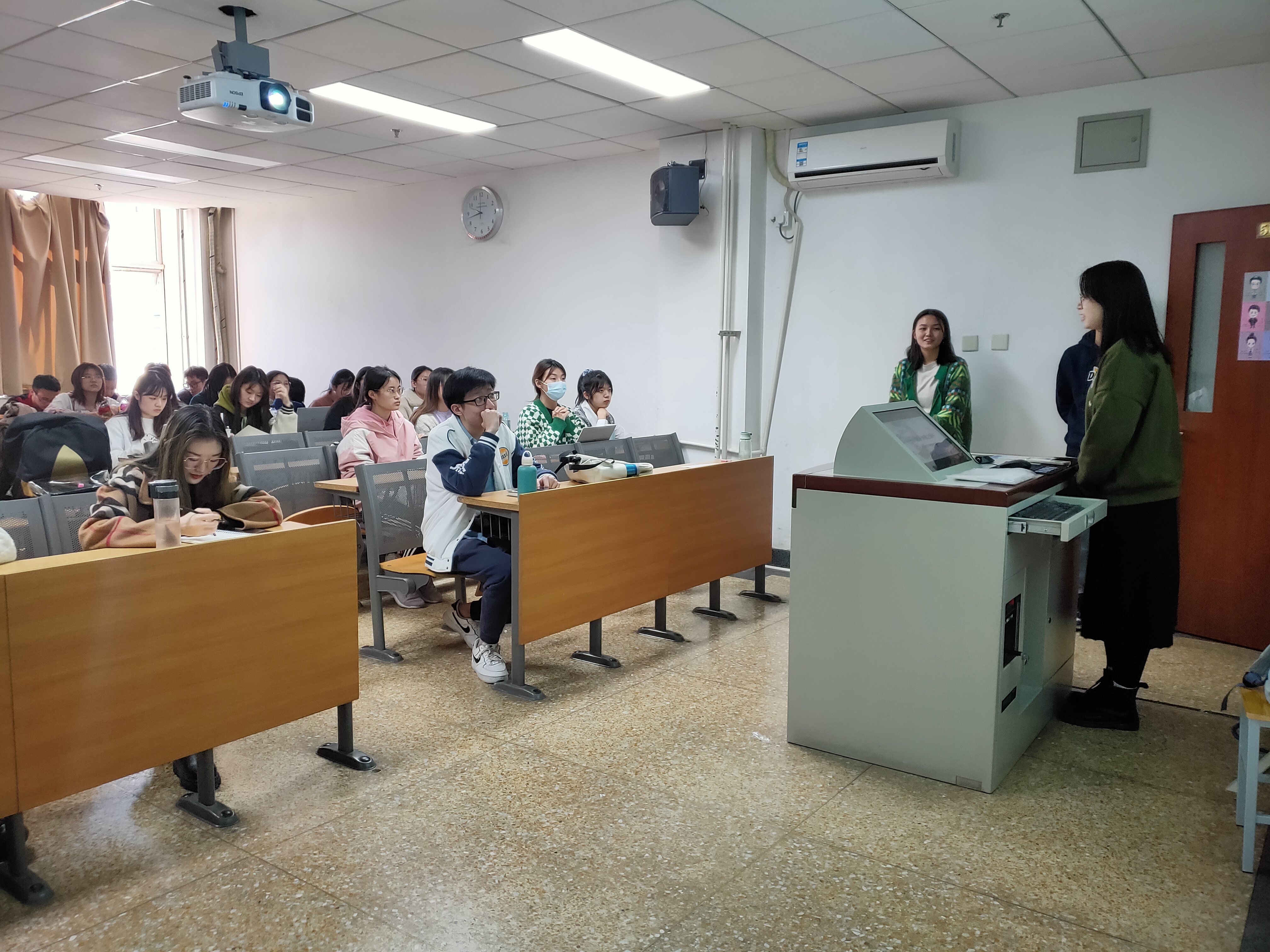 在活动开始前,团支书刘周越收集了班上同学关于成长规划、实习保研问题的问卷,整理之后向学姐罗淇、学长吕伟浩反馈,学长学姐分别针对这些问题在此次团日活动上进行了解答。