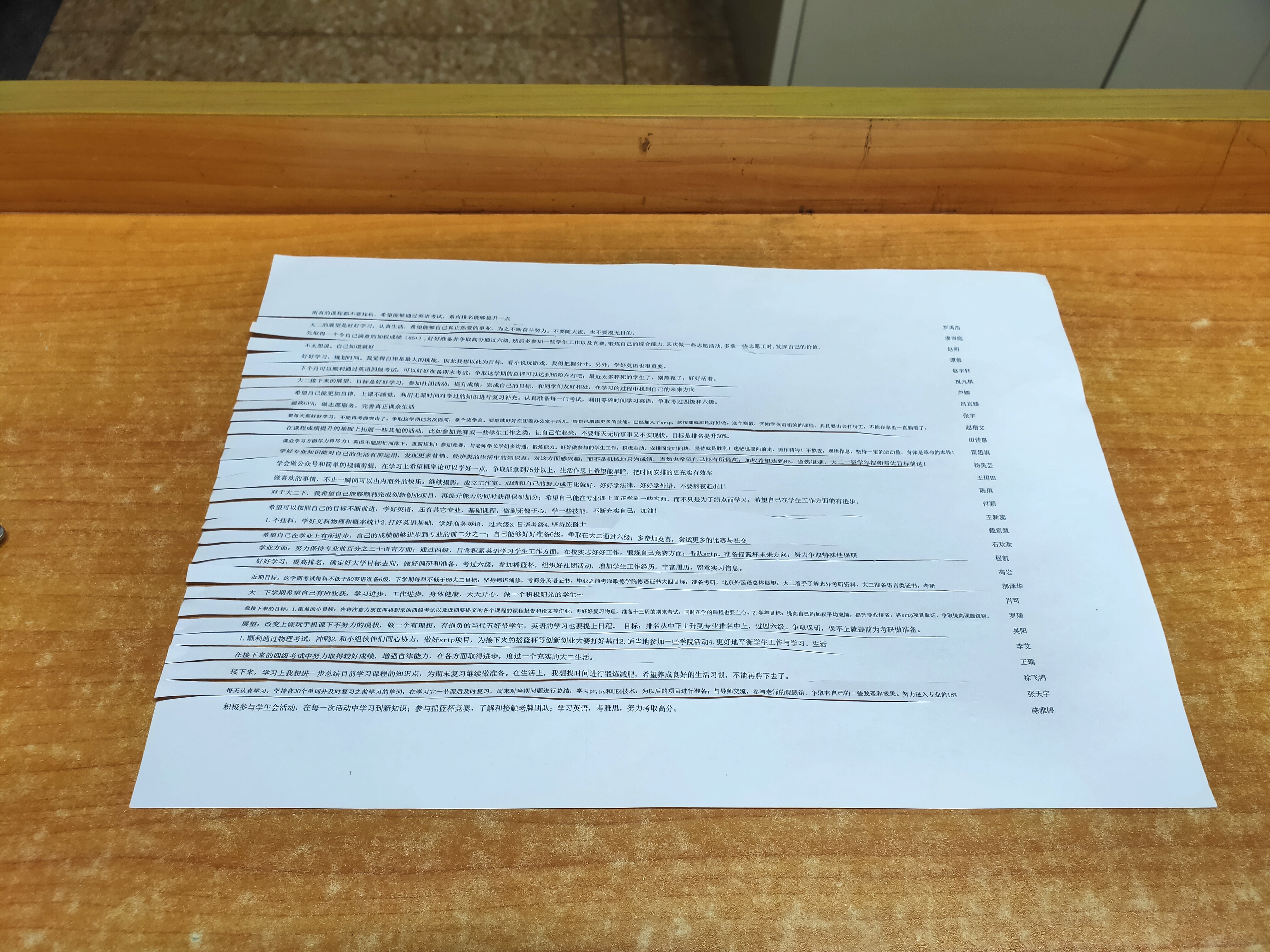 在活动最后,团支书刘周越和组织委员杨美芸一起分发了班级同学在大一写下的梦想卡和大二写下的展望,希望同学们回顾自己的目标是否达成;下发了梦想卡给大家填写,希望在此前的基础上继续向前努力。