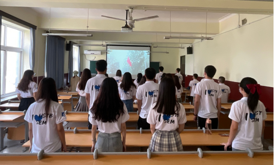 典礼最后,全体师生起立,奏唱《北科华章》。