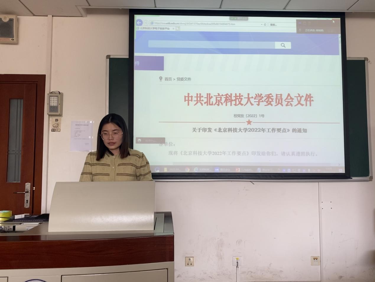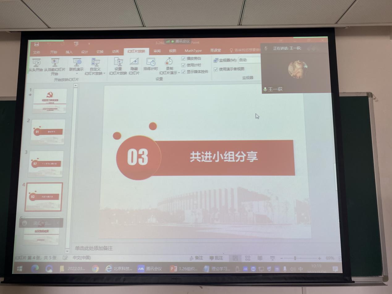 2022年3月26日9:00,beat365在线唯一官网管工研党支部开展了三月党支部的组织生活活动,因疫情防控原因,本次组织生活于经管楼502、管庄校区教学楼109和腾讯会议同步开展。支部党员34人参加,积极分子13人列席。