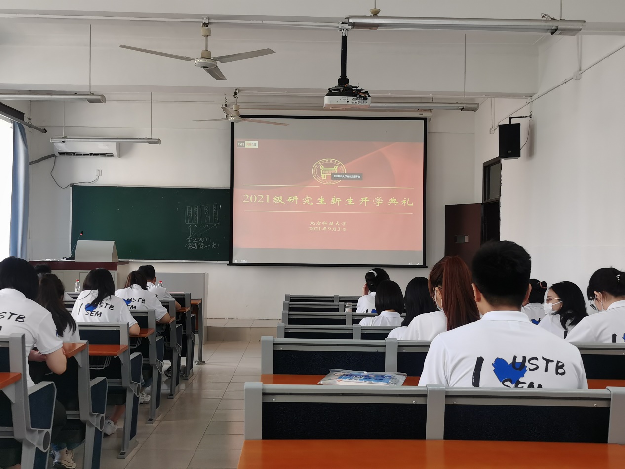 第一项,集体观看研究生开学典礼。首先,校学生会主席董续雨和新生代表任书濠分享了北科的生活体验。接着,研究生导师代表贺威教授对同学们提出“三要”,要瞄准科技前沿和国家重大需求,做“顶天立地”研究,要以时不我待的奋斗精神开启科研生活,要在学科交叉融合中进行科技创新。最后,校长杨仁树致辞,号召同学们守正创新,做勇攀高峰的北科人。