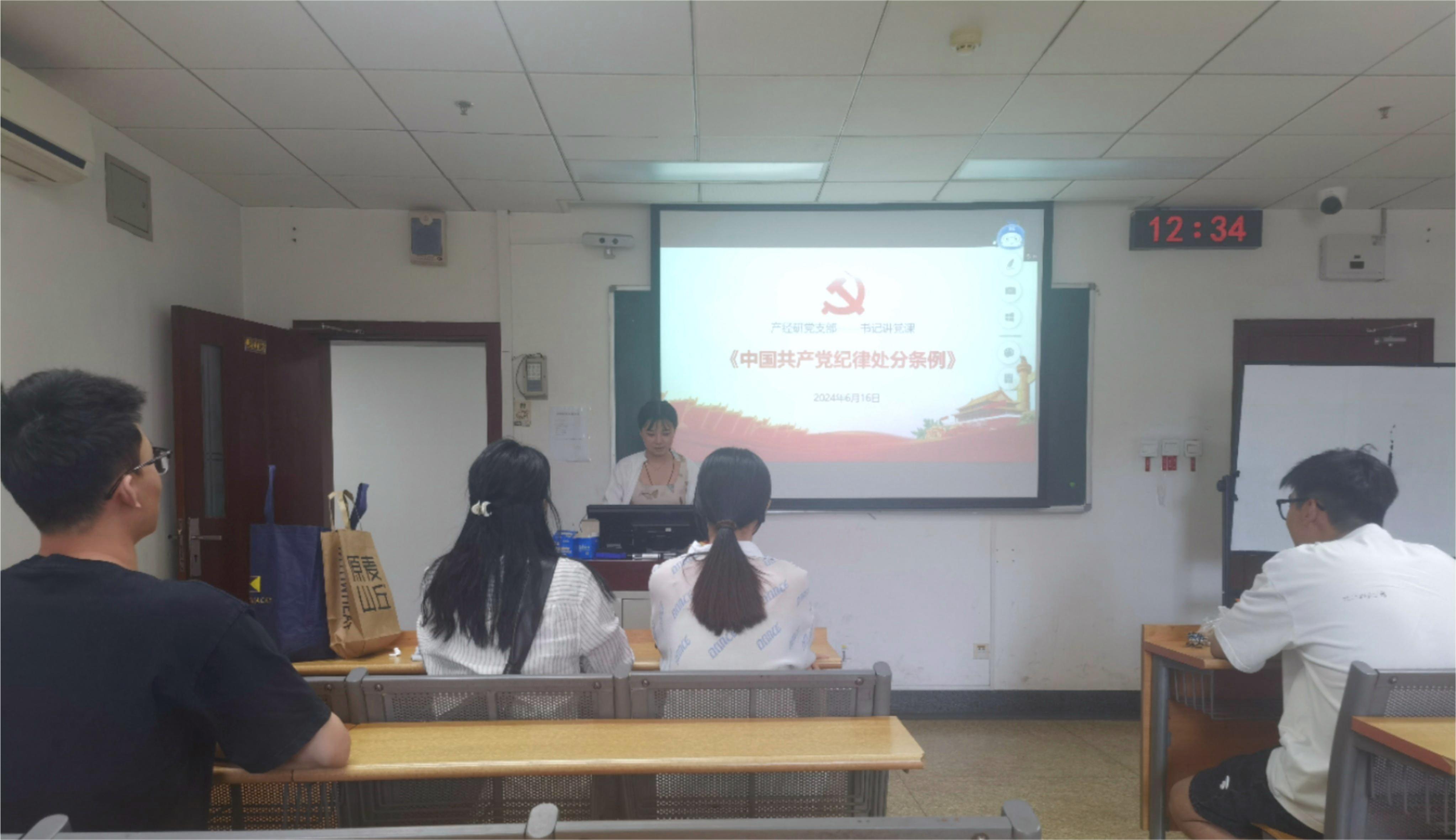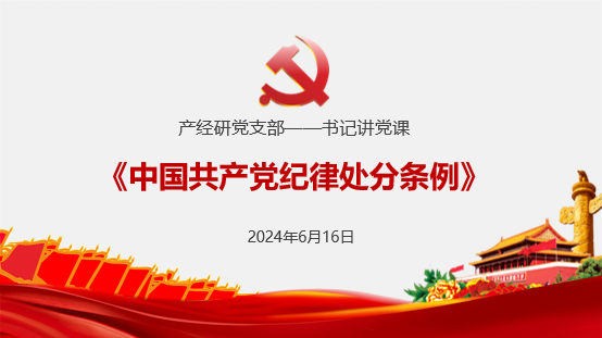 2024年6月16日12:30,beat365在线唯一官网产经研党支部在经管楼502教室开展了学习《中国共产党纪律处分条例》(以下简称《条例》)的专题党课。本次党课由党支部书记李盈霏同志主讲,产经研党支部全体党员和积极分子参加。