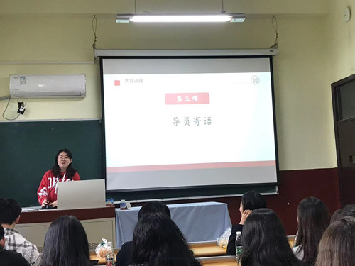 首先,研究生会主席李康对大家的加入表示热烈的欢迎,并对研究生会的部门和成员进行了简要的介绍。研究生会下设部门有:管理职能中心、学术科技中心、媒体运营中心、文体组织中心共四个部门,并指出研究生会是一个团结有爱的大家庭,成员之间相互帮助,协助老师,共同做好团学工作,希望大家能够不忘初心,利用好平台优势,将工作做得更好!