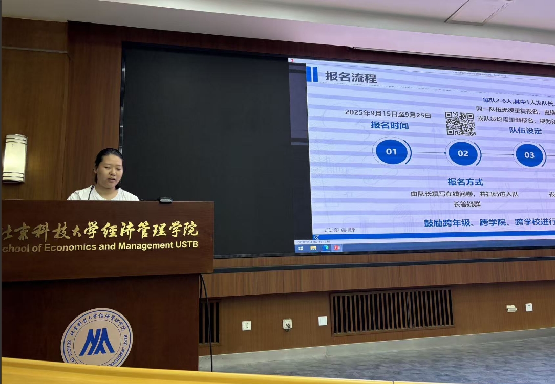 首先由管理协会主席姚佳语进行营销大赛赛事说明,具体介绍报名流程、成绩记录与安排、大赛奖励等,强调关键要点,明确关键时间节点。