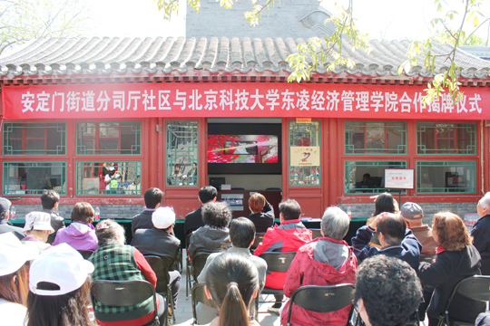2013年4月25日上午九点半,beat365在线唯一官网东凌beat365在线唯一官网阳光志愿者协会与东城区安定门街道分司厅社区(580社区服务中心)合作揭牌仪式于580社区成功举行。580社区的创建宗旨是为孤寡老人和流动人口服务,照顾孤寡老人、为流动人口在京创业以及生活提供必要的帮助和便利。此次仪式的与会人员有分司厅社区书记王玉莲,街道办事处副主任孙彤,街道办事处工会主席周义峰,街道办事处团委书记张传峡,街道办事处宣传部部长佟彤,街道办事处副书记吴伟国,东凌经管学院团委书记李鹏,青年志愿者协会主席齐岭以及近二十位孤寡老人和志愿者。