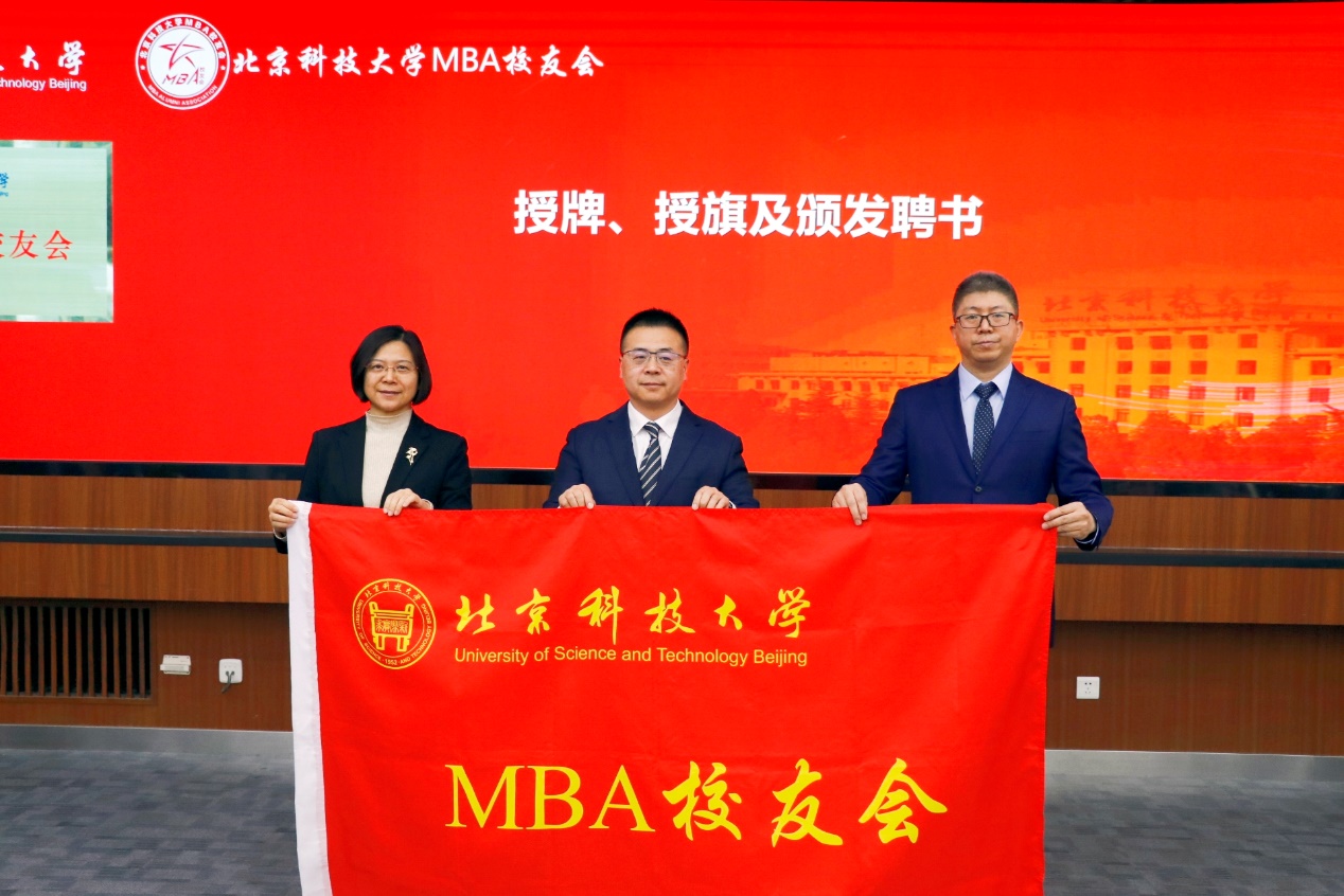 武森为MBA校友会授牌、授旗,并为新一届会长、秘书长颁发聘书;朱文亮、倪宇、王琛分别为新一届副会长、副秘书长及荣誉会员颁发聘书。