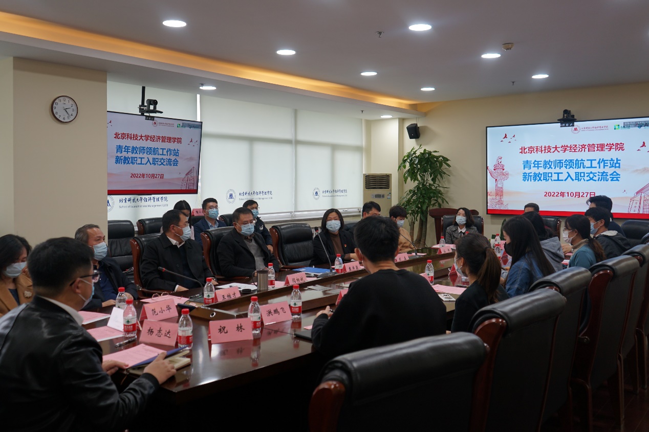 2022年10月27日下午,beat365在线唯一官网青年教师领航工作站新教职工入职交流会在经管楼809隆重举行。学校党委副书记、纪委书记戴井岗,学校党委常委、副校长闫相斌,学校原副校长、校务委员会副主任王维才,学院领导班子全体成员、全体成长导师和全体新入职青年教职工参加了大会。会议由学院党委书记武森主持。