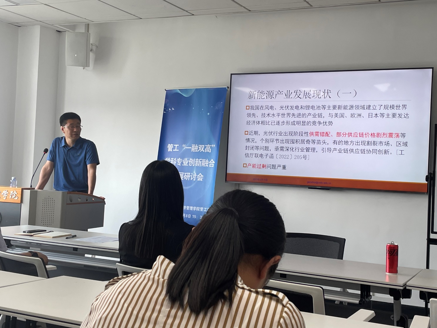 会议由管工系副主任葛泽慧老师主持。系主任兼系党支部书记杨建华老师做了“中国式现代化指导管理科学与工程学科专业建设方向”的主题报告,学科秉持“立德树人”,推进“一芯双翼”协同育人,紧紧围绕制造业高端化、智能化、绿色化发展战略,以及数字产业化、产业数字化转型、产业链供应链现代化等战略需求,面向国家和行业重大科学问题开展学科建设,主动适应国家战略性新兴产业变革需求,聚焦学科科研高地建设,激发老专业新动能,夯实新专业发展之根基,形成了学科前沿驱动,内外双驱、科研创新高地与产教融合创新的特色,实现了学堂创新与知行合一。