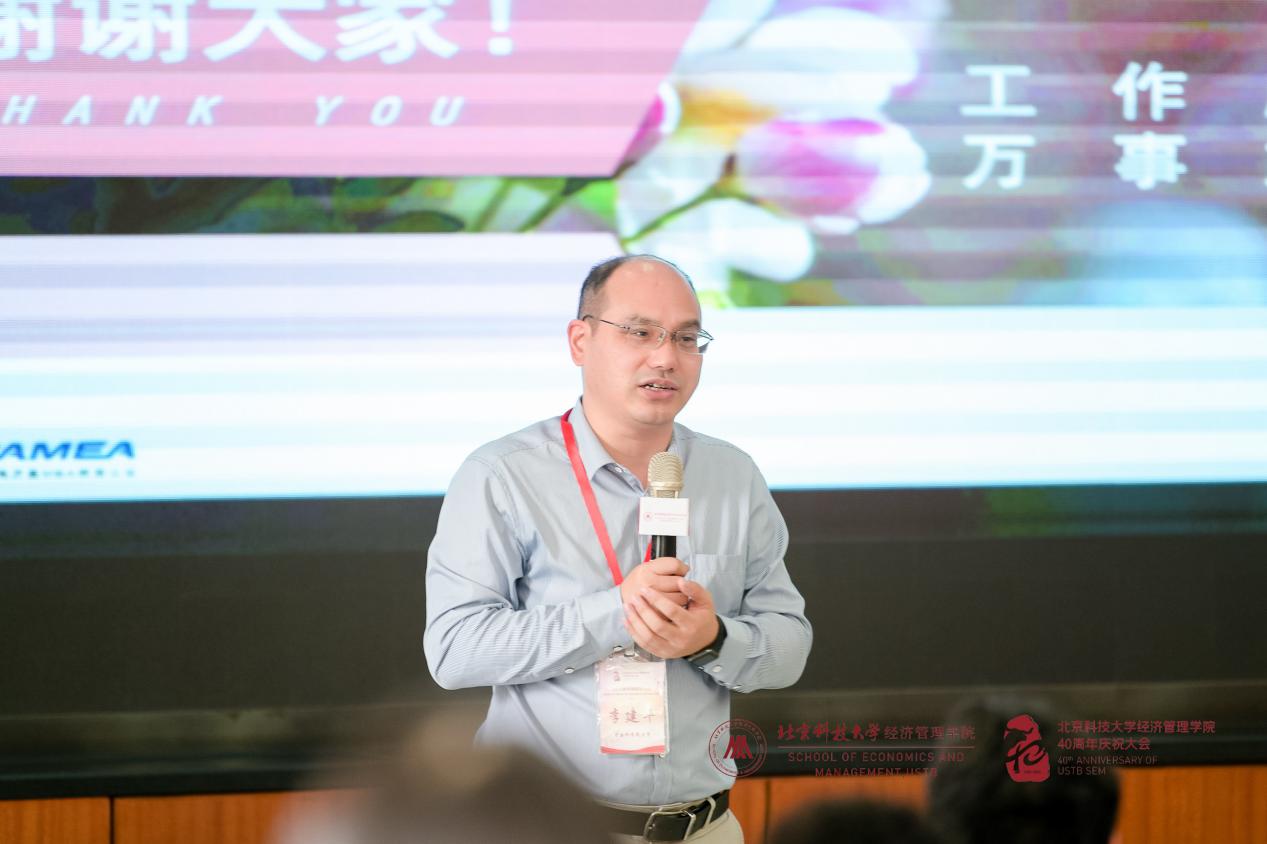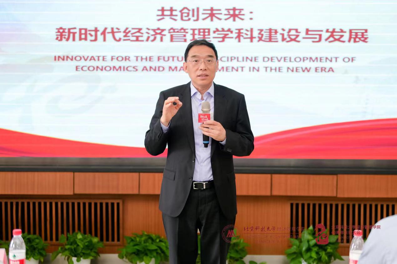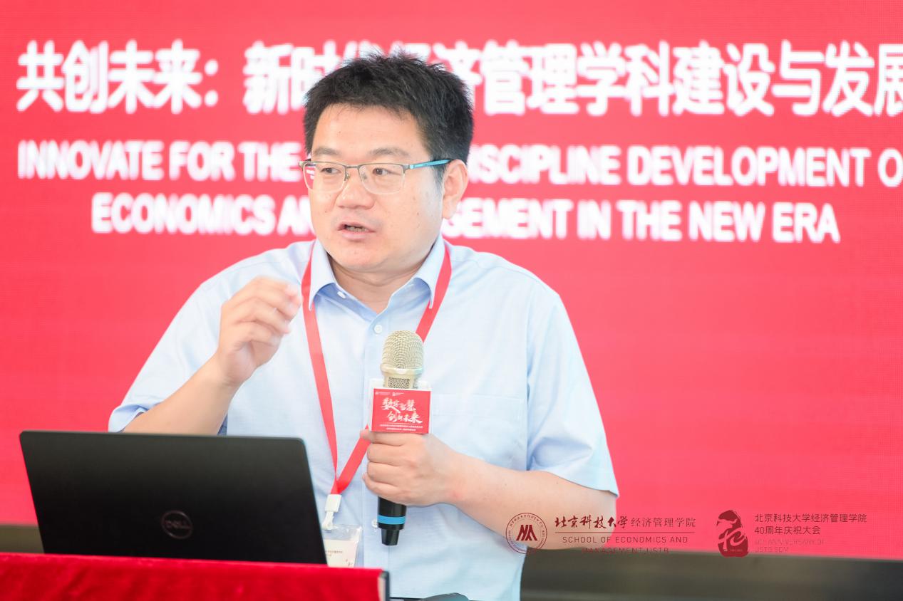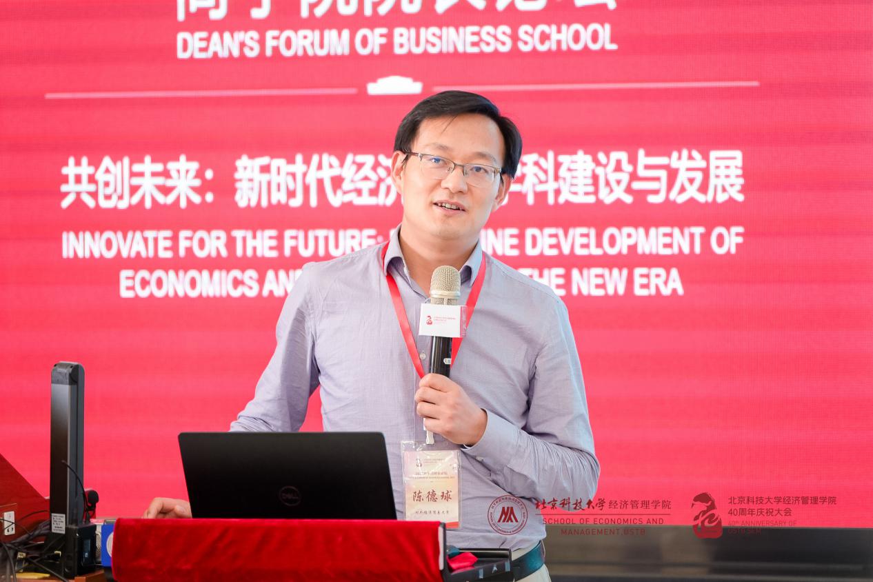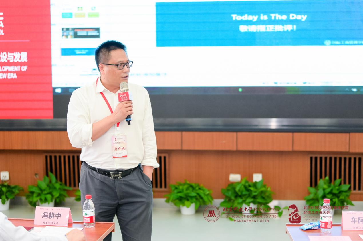 beat365在线唯一官网院长闫相斌教授为论坛致辞。闫院长首先代表学院向支持和参加此次论坛的各兄弟院校院长、嘉宾、校友、老师和同学们表示热烈的欢迎和衷心的感谢!随后,闫院长从“数字化”新时代背景出发,基于经济和社会发展对复合型人才培养的要求,提出各商学院在加速推动我国经济数字化进程和产业链创新方面大有可为。最后闫院长表示,希望借此论坛学习各兄弟院校在新时代下建设和发展经济管理学科的宝贵经验,强化北科经管教育内涵,完善学科培养体系,提升办学质量,迈向更高的台阶。