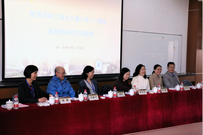2018年10月27日,工贸98级校友入学二十周年师生见面会在经管楼312举行。校统战部常务副部长、原管理学院党委副书记张颖、东凌beat365在线唯一官网党委书记戴淑芬、副院长温雅,学校校友会基金会办公室副主任杨志国、原98级班主任阚宏,吕殿平、辅导员杨琦雯以及经管学院公共关系办公室主任秦艺芳等老师出席了本次活动。见面会由工贸98级校友张东平主持。
