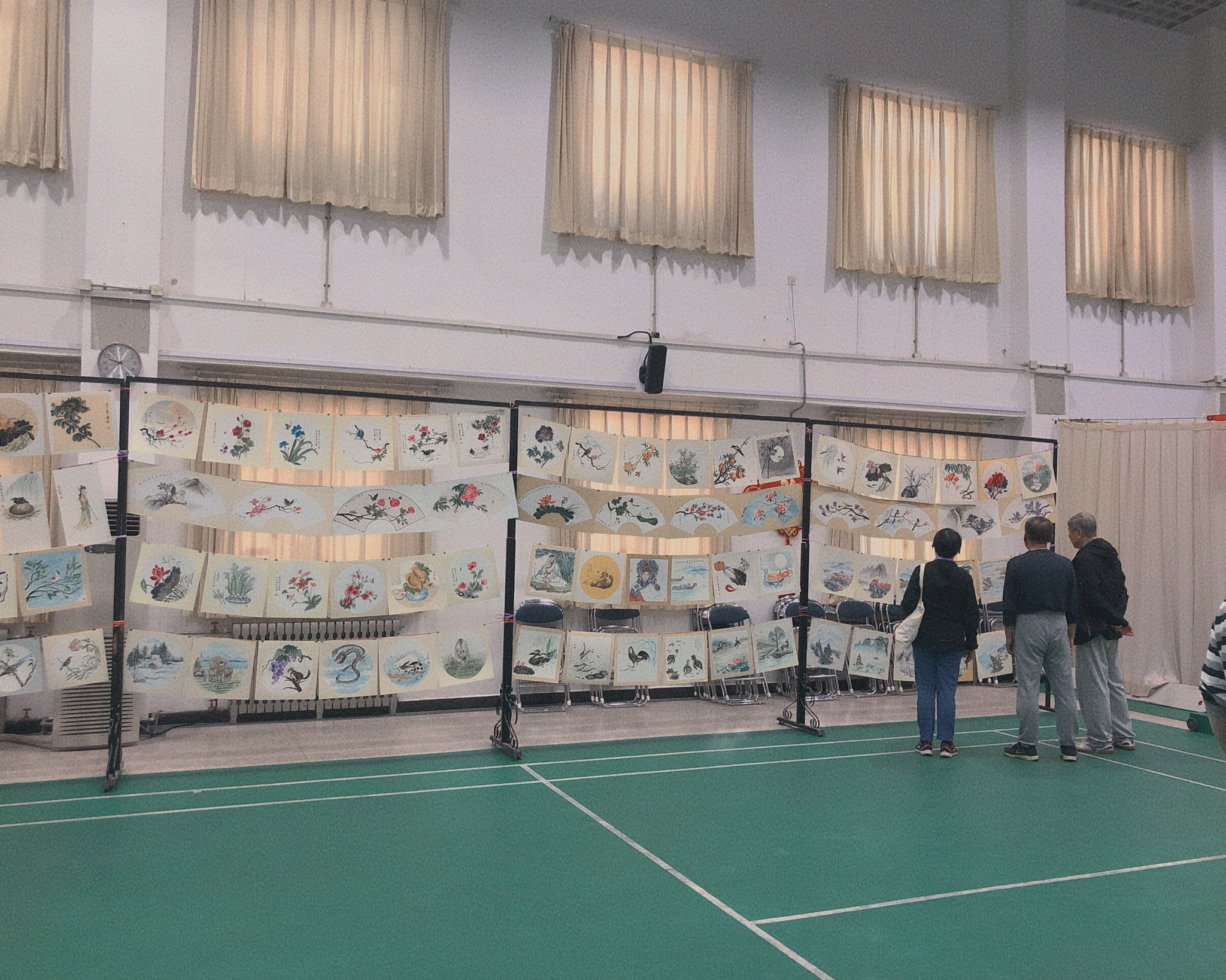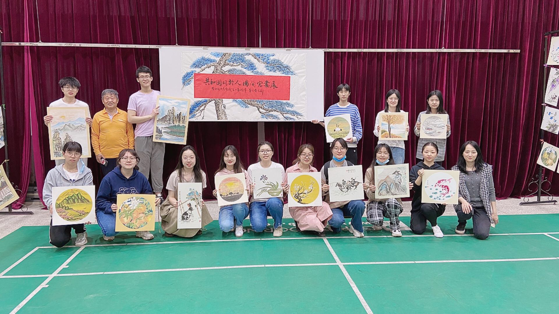 曲开宏老师是我校机械学院的校友,曾担任工程训练中心机械室主任,有着对艺术的执着追求。此次画展以“歌颂党、歌颂祖国、歌颂人民,抒发爱党爱国爱人民的豪情,传递积极健康向上正能量”为内容,宏伟的山河、美好的花鸟、奋战在疫情一线的工作人员....风格包罗万象,每一幅都是妙笔生花。同学们分成几组,搬运画架,挂绳子和夹子,将一副副珍贵的画作小心地搬运至展厅,然后设计调整绘画作品的摆放。