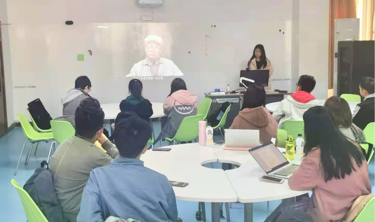 活动由团支书褚格宏主持进行,以讲述“四史”故事、观看“四史”影像等方式开展学习。褚格宏以中共一大、中共二大、中共五大等重要的时间节点为线索,系统讲解了“四史”的具体内容以及深刻内涵。她强调,贯彻落实好“四史”的学习教育,对研判世情、国情、党情,科学把握党和国家所处的历史方位;对批判错误思潮、理清历史脉络;对增强理想信念;对发掘利用好红色文化资源,推动思政课创新,掌握学习研究的叙事权、话语权等,都具有重要意义。