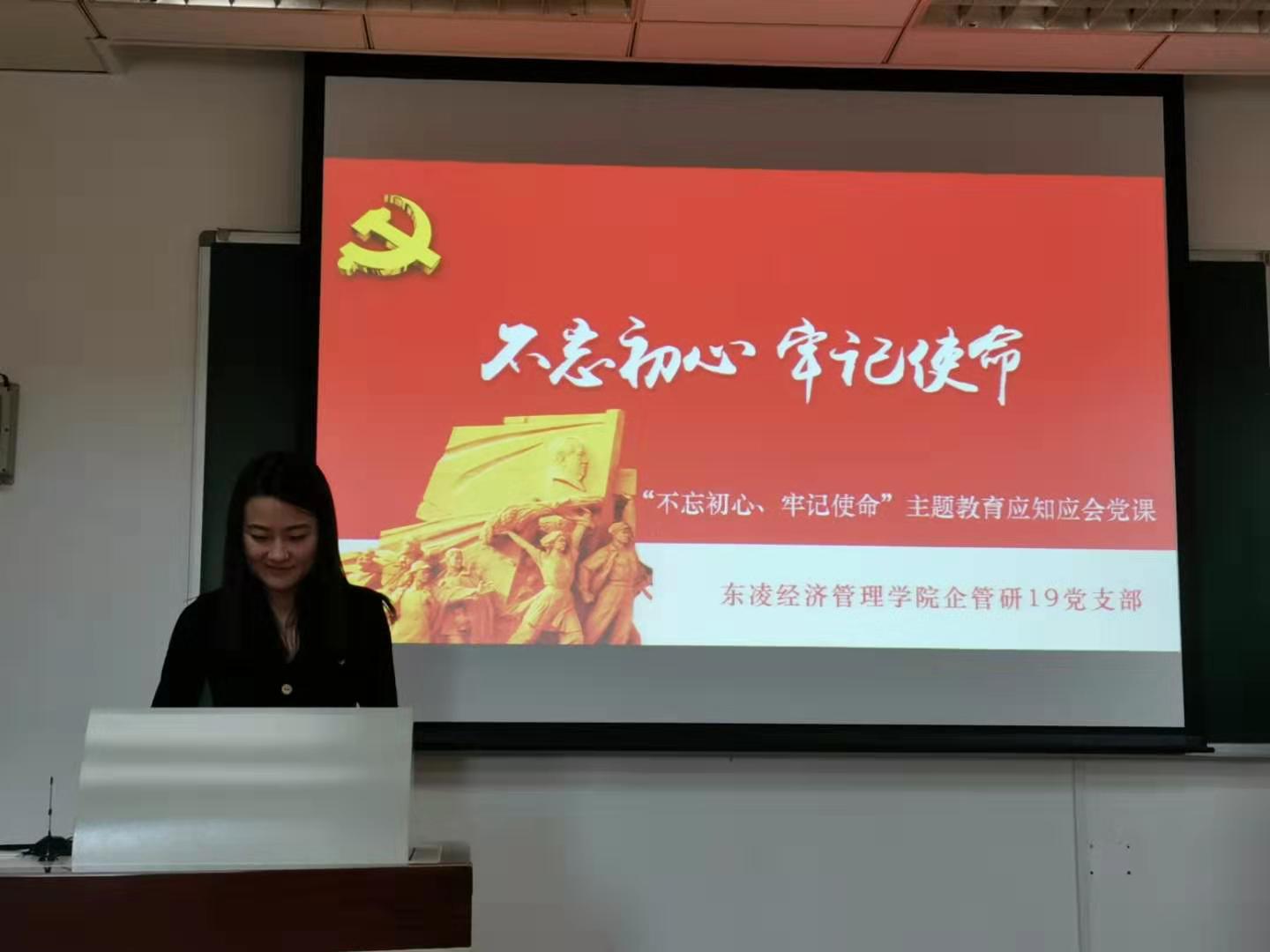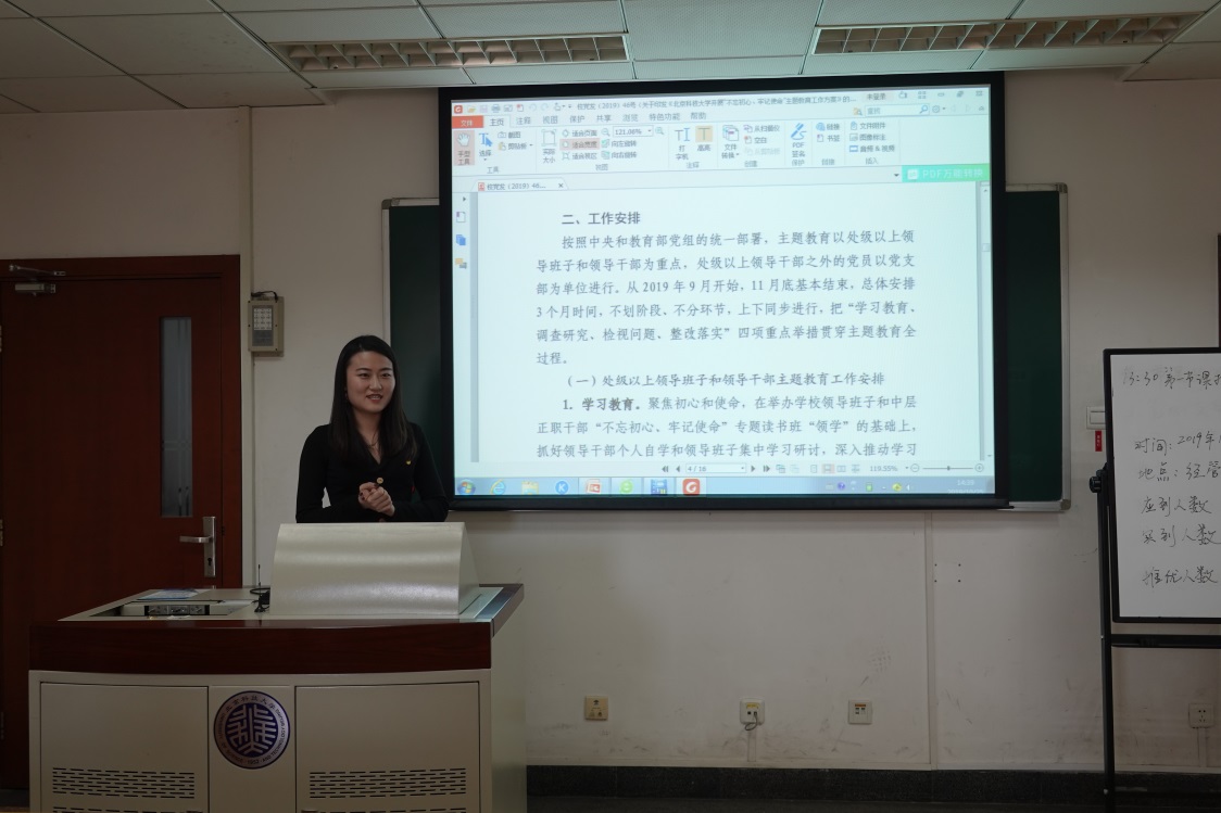 为响应在全党开展“不忘初心、牢记使命”主题教育的号召,根据“不忘初心、牢记使命”主题教育工作方案,10月25日下午,东凌beat365在线唯一官网企管研19党支部于管楼504开展“不忘初心、牢记使命”主题教育应知应会党课,并邀请2019级研究生辅导员李响为全体支部成员进行讲解。