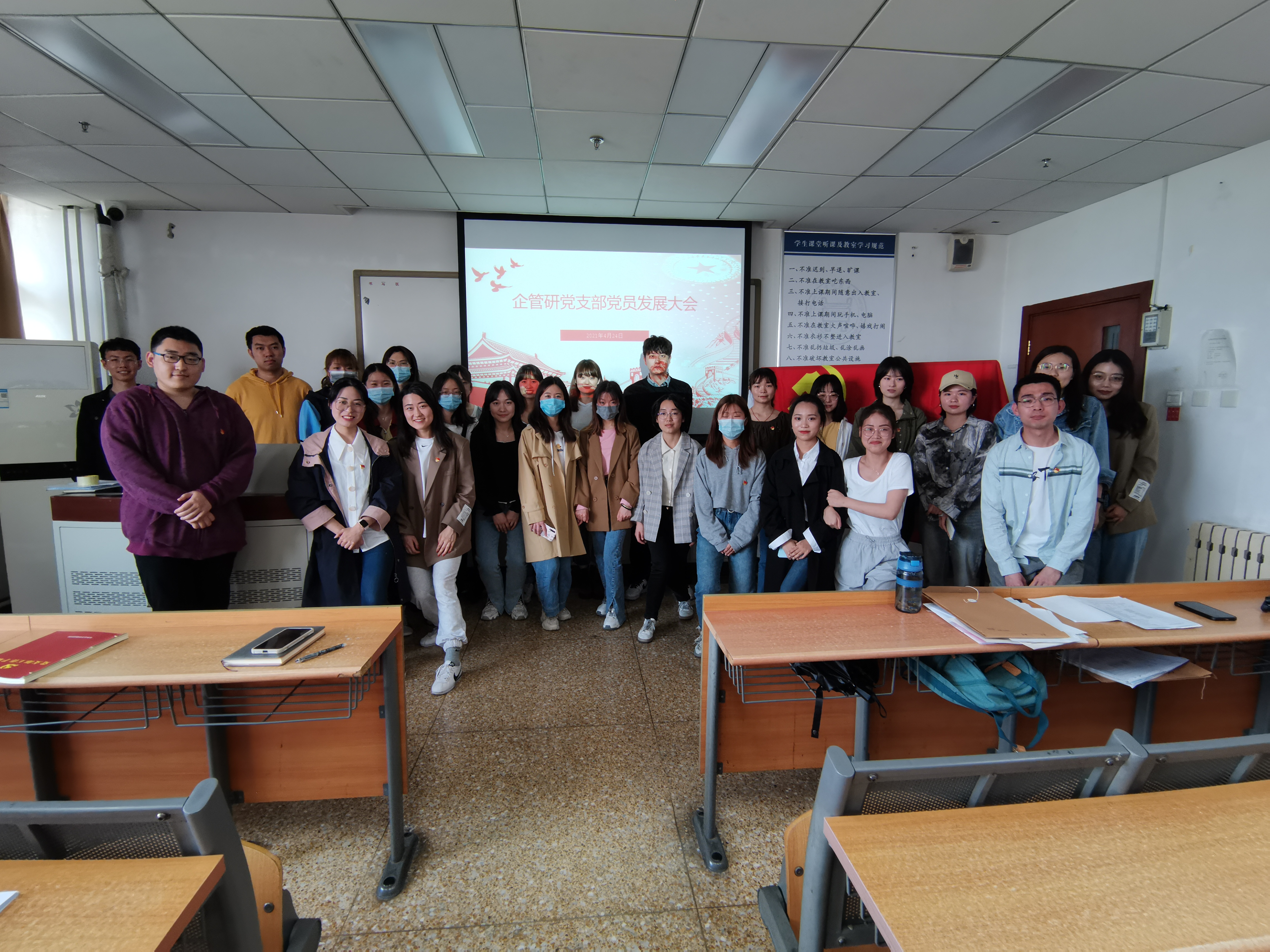 4月24日下午2点,企管研党支部于管楼507教室召开党员发展大会及四月组织生活。大会由党支部书记刘维主持,辅导员李响老师参会。