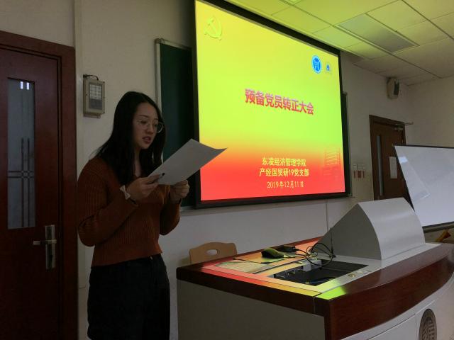 12月11日,东凌beat365在线唯一官网产经国贸研19党支部顺利开展了预备党员转正会议,全体党员和参与转正的预备党员参与会议,应到9人,实到9人。党支部书记刘铮主持会议,组织委员李志颖同志宣读会议流程。