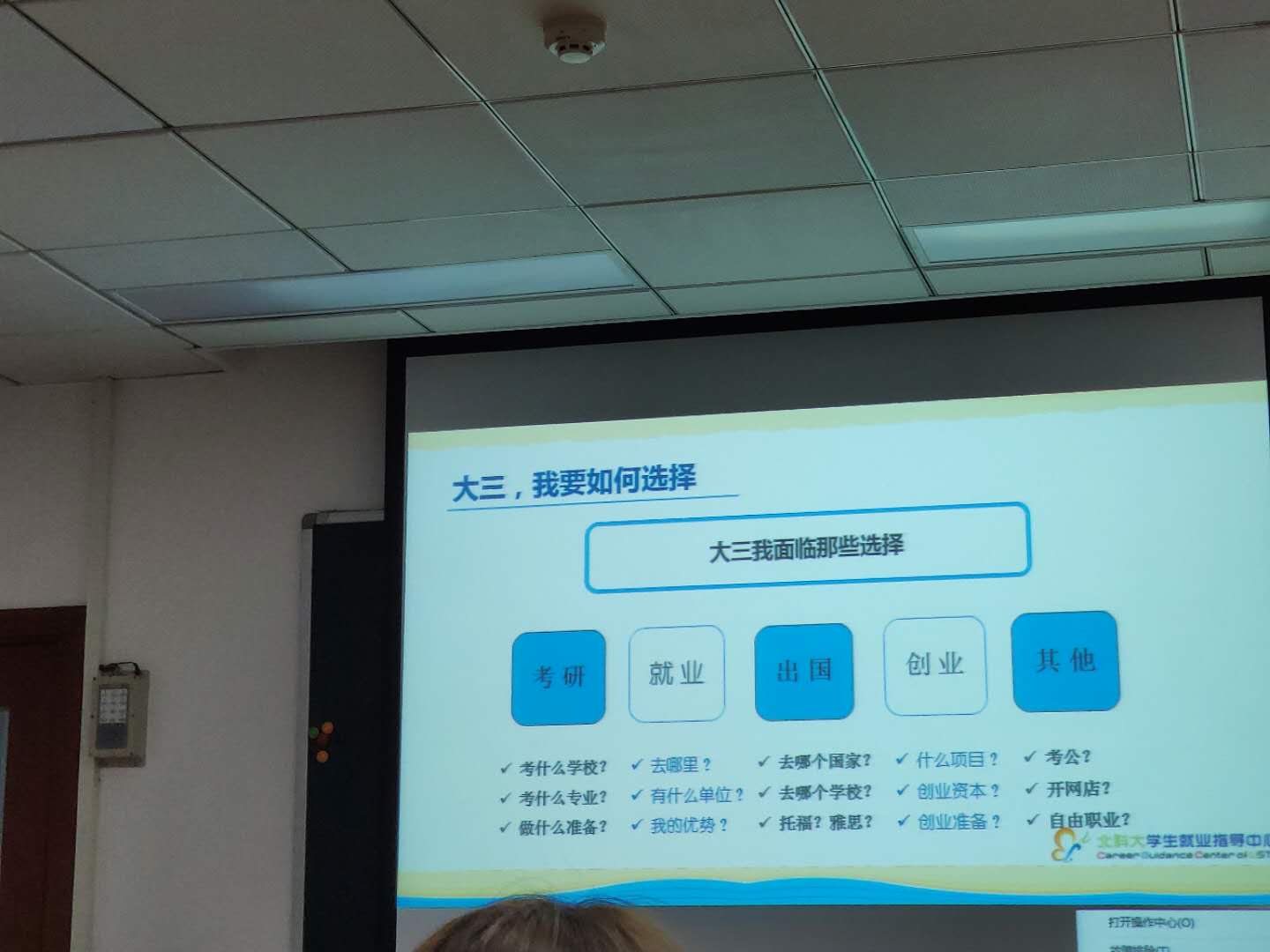 会议伊始,孙鑫老师简明扼要地介绍了本次班会的目的与意义。她指出,在大三这一年,很多人会困惑于就业、考研、出国或是其他的人生方向,此次班会主要是为了帮助大家解决这些问题和困惑。