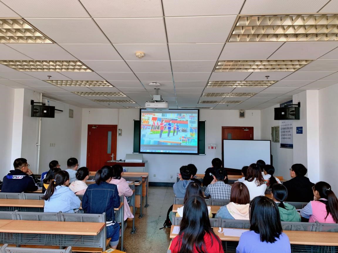 首先,同学们共同观看了2019届毕业生纪念视频。视频中记录了2019届学长学姐大学四年的学习与生活,体现了他们对大学的理解。视频从春夏秋冬四个季节一一叙述,表达了不同季节他们眼中梦想的不同色彩,让大家对未来的大学生活有了一个初步的认识。