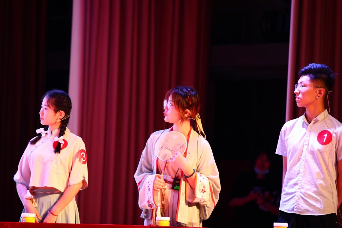 “赵瑟清相似,胡琴闹不同。慢弹回断雁,急奏转飞蓬。”当诗词遇上胡琴,又将以新的姿态向大家展示它的美好。来自文法学院的学生国乐团带来胡琴重奏《采红菱》。第三轮比赛为“飞花令”,在场选手你来我往,展现了自己丰厚的诗词储备功底,经过激烈比拼后,前三名结果诞生,分别是状元金琣明、榜眼陈潇然、探花盛翔宇。于成文、彭庆红分别上台为前三名选手及十二强选手颁奖。