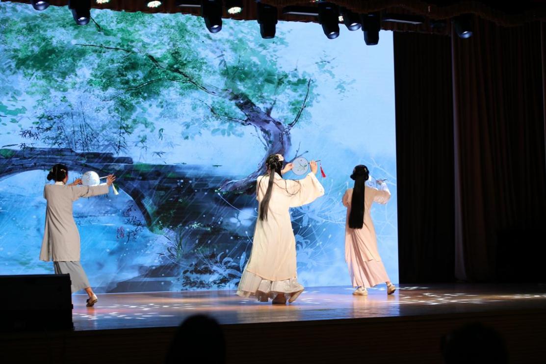 观看诗词大会回顾视频后,比赛开始。第一轮对抗赛选手们积极抢答,精彩的表现令人惊叹不已,现场气氛十分热烈。“飘然转旋回雪轻,嫣然纵送游龙惊,小垂手后柳无力,斜曳裙时云欲生。”中华民族的舞蹈文化源远流长,上下五千年,连绵不断。第一轮比赛之后,尺素汉服社带来一曲充满中国文化气息的舞蹈《棠梨煎雪》。