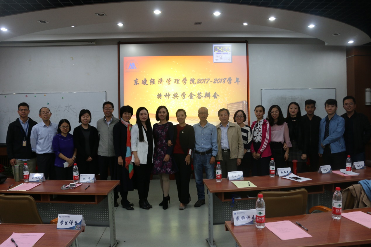 10月9日晚,东凌beat365在线唯一官网2017-2018学年特种奖学金答辩会在经管楼313举办。为了使18级新生更方便从参与本次答辩的优秀的学长学姐身上领会吸收学习经验、思考规划大学生活,本次奖学金答辩会邀请了百余名大一新生作为观众,并在经管小核公众号上发布了选手答辩资料。