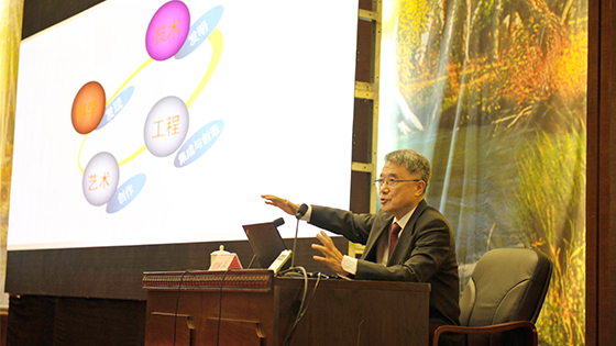 接下来,老师们聆听中国工程院何继善院士以“科技与艺术”为题的报告,报告中,何院士深入浅出,生动风趣地为大家阐述了科学,技术,管理与艺术的密不可分的关系,为大家展现了一道独特的管理与科技,管理与艺术的风景线。何院士结合自己艰苦童年到学有所成的经历,发出了“我很羡慕大家”的感慨,殷切希望大家能够在如此大好环境下,乘风而上,取得成绩。最后何院士为大家展示了他为抗战胜利70周年所创作的书法,每一幅字,何院士都饱含热情地讲解,大家无不为何院士的专注的学术态度,满满的爱国热情所感染,现场数度掌声雷动!