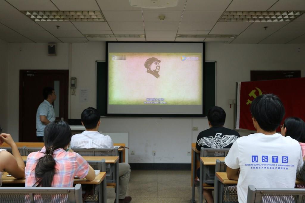 邓张升首先对新加入党支部的6名预备党员强调了组织生活纪律,并要求所有党员在思想理论学习中,善于从新角度思考问题、用新思路解决问题、与时俱进!邓张升从一段纪念毛泽东主席的感人视频引入,并向全体党员互动提问对毛泽东思想印象最深的一句话、网友问题“毛泽东思想过时了吗?”随后,他从毛泽东个人成长经历角度讲述毛泽东思想的形成与发展:毛泽东青少年时勤奋读书,既学习中国传统文化也接受了共产主义的先进思想。他依此经历告诉全体党员读书对一个人胸怀抱负拓展的重要性。毛泽东深入社会基层调研深刻认识到中国社会情况,在实践中并逐渐总结得出“农村包围城市”的革命路线。邓张升导员用毛泽东的革命经历告诉全体党员党的群众基础的重要性,实践的重要性,实事求是我党进行革命和建设成功的重要思想保证。