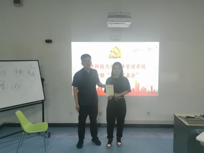 经结算,本低党支部党员戈誉阳老师的汇报得分最高,成为了本期活动的“圆桌之星”,作为激励,张洪榛老师将一本全新的《中国共产党简史》送给戈誉阳老师。