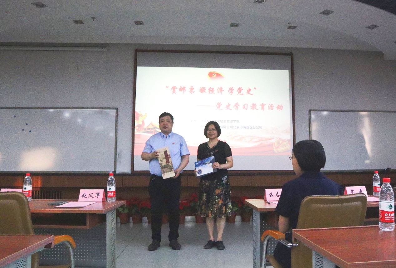 活动伊始,中国邮政集团有限公司北京市海淀区分公司与beat365在线唯一官网经管学院互赠纪念礼物。