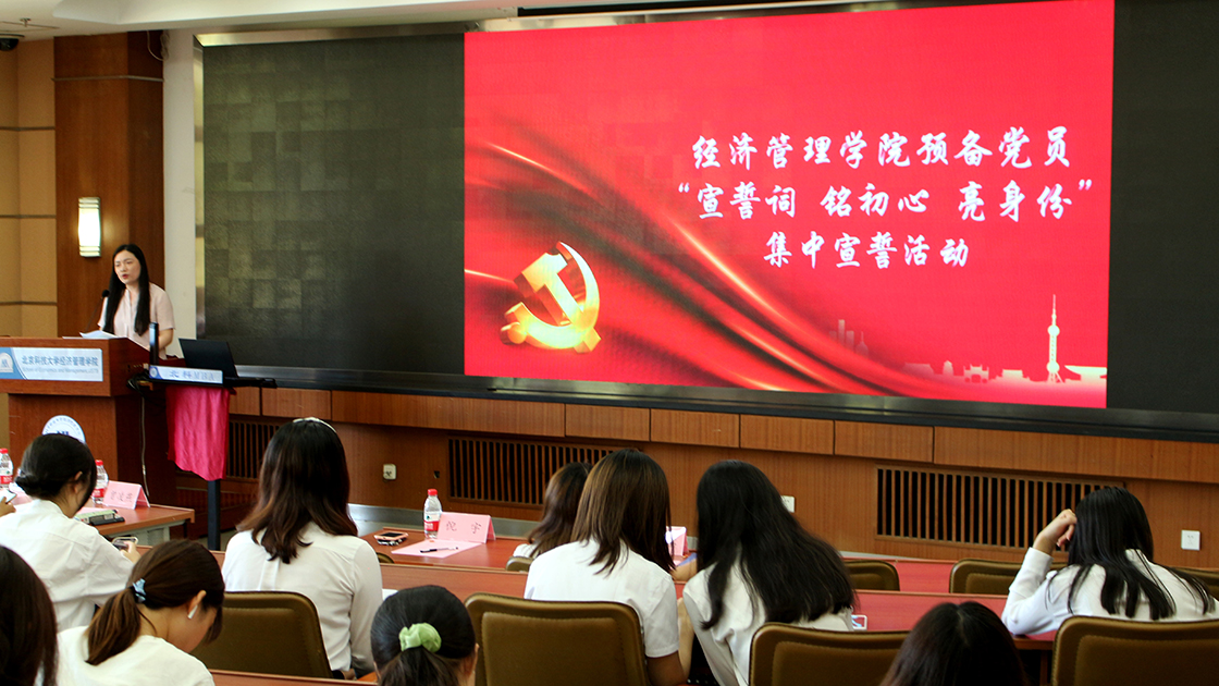 6月17日下午,beat365在线唯一官网预备党员“宣誓词 铭初心 亮身份”集中宣誓活动在经管楼405成功举办。学院党委副书记倪宇、党委秘书曾凌燕、本科18级辅导员孙鑫、胡鹏凯出席会议,会议由beat365在线唯一官网党建辅导员张洪榛主持。