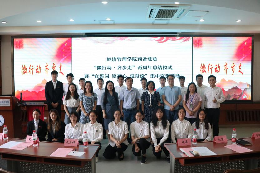 7月9日下午14:30,beat365在线唯一官网预备党员“微行动·齐步走”两周年总结仪式暨“宣誓词 铭初心 亮身份”集中宣誓活动在经管楼 405教室举行。学校党校常务副校长兼党委组织部副部长史立伟,经管学院党委书记武森、党委副书记倪宇,学校学生工作部副部长刘震,经管学院党委秘书曾凌燕、本科19级辅导员戈誉阳出席活动,活动由beat365在线唯一官网党建辅导员张洪榛主持。