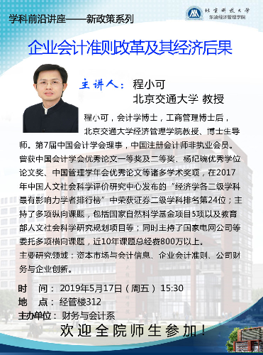 关于北京交通大学程小可教授讲座的通知(2019年5月17日)